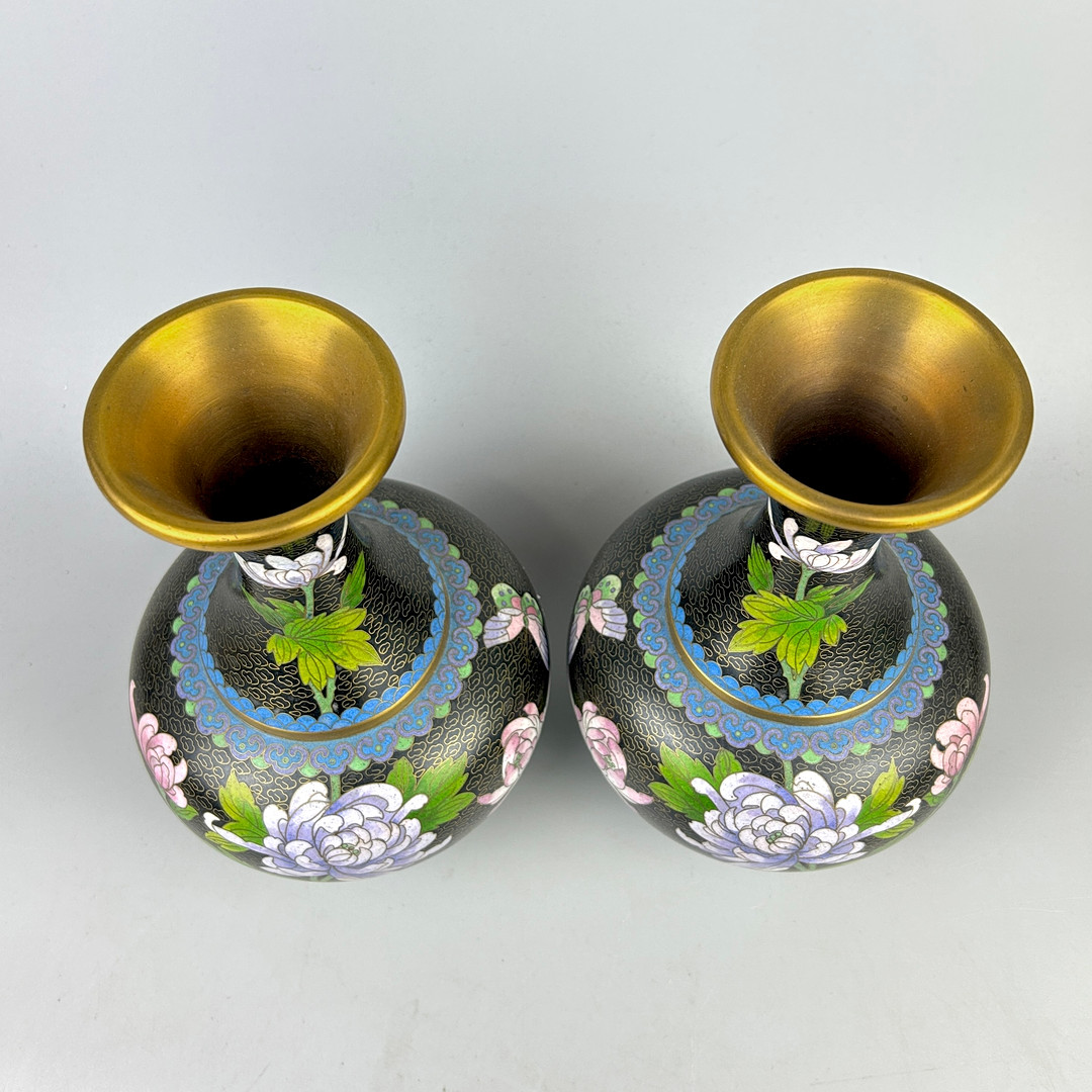 4909797. CHINESE CLOISONNE VASES.
