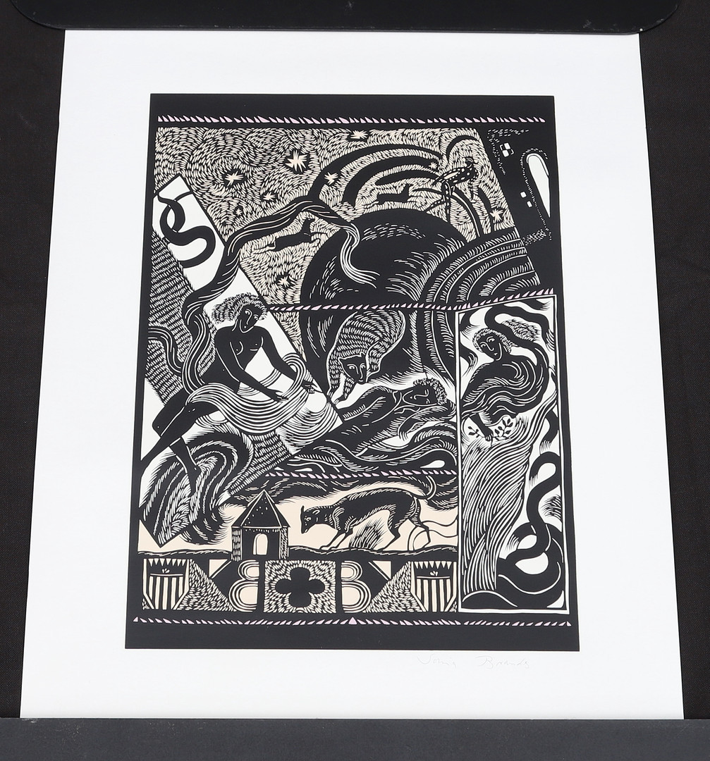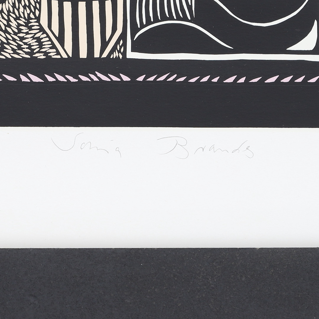 4909930. SONIA BRANDES. Linoleum cut, figure composition, signed.