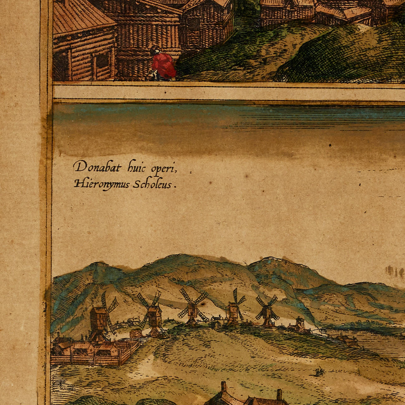 Many famous geographers and cartographers collaborated in the creation of the work. Central to the advent was Frans Hogenberg (1535-1590), Flemish/German painter and engraver who engraved most of the cityscapes in “Civitates Orbis Terrarum”.