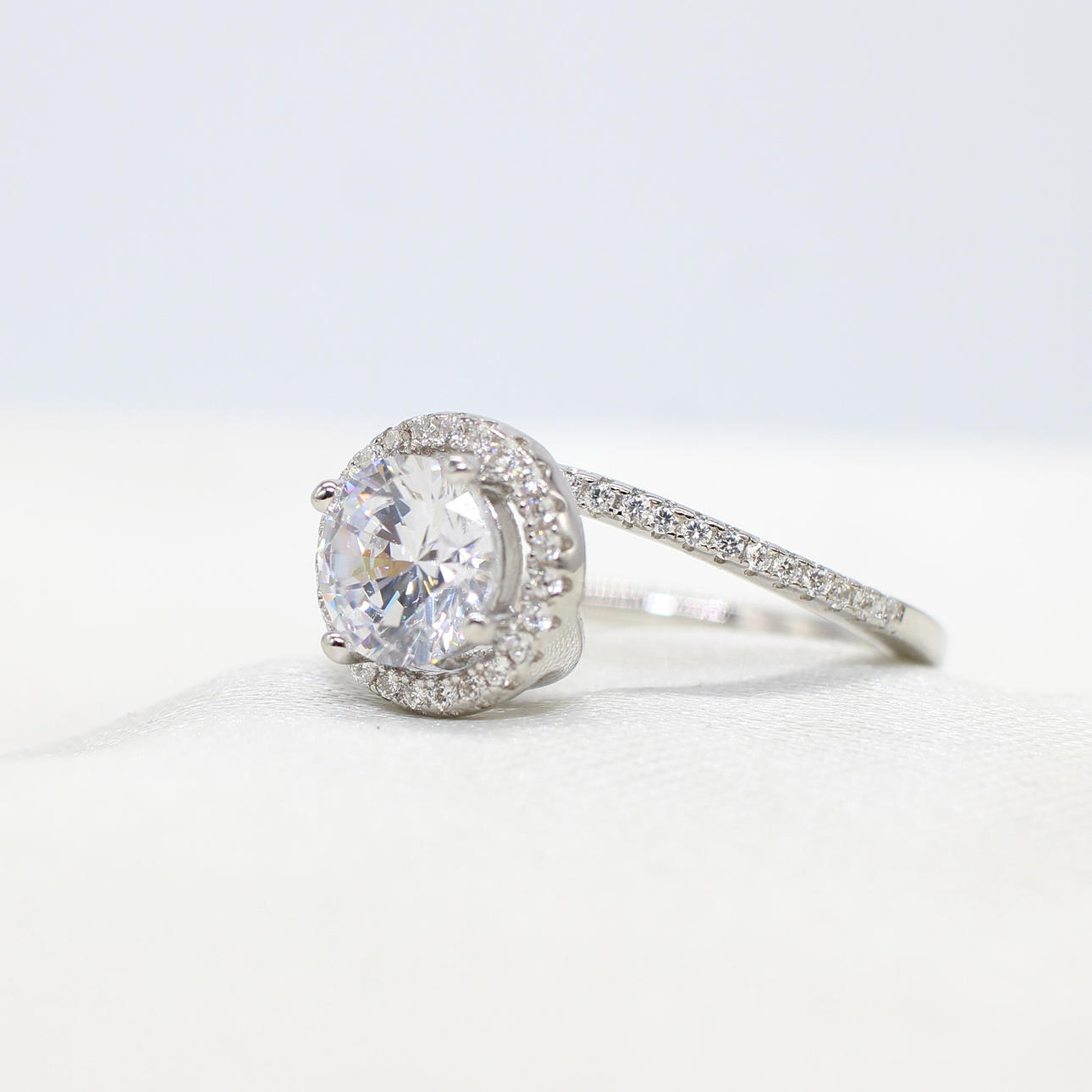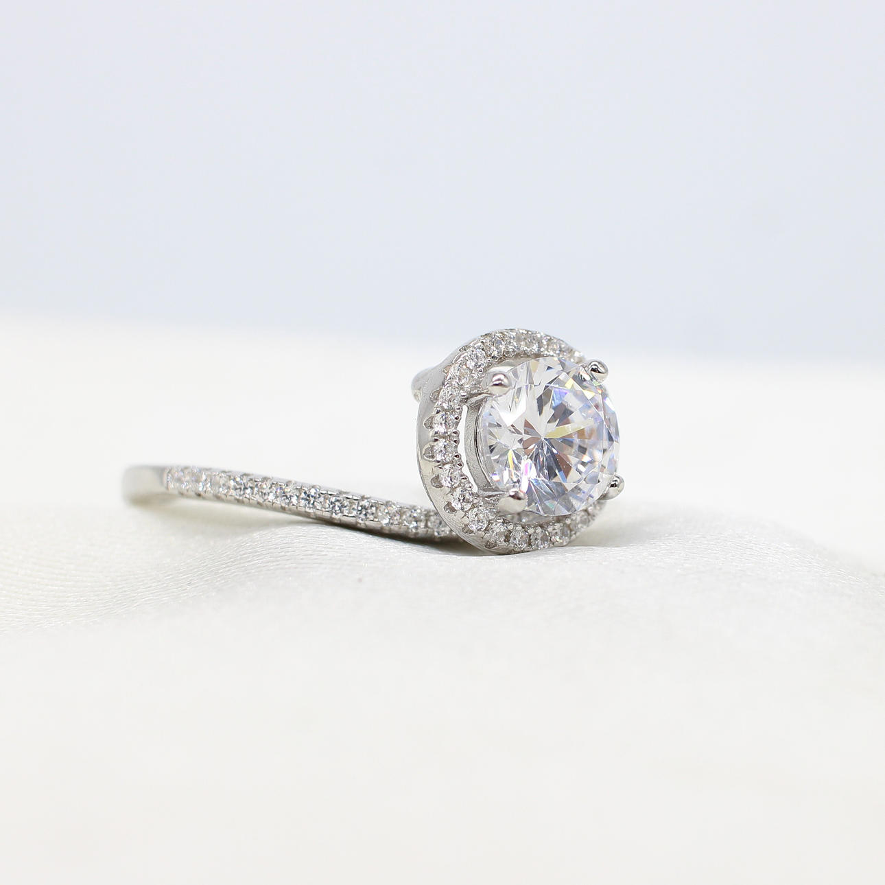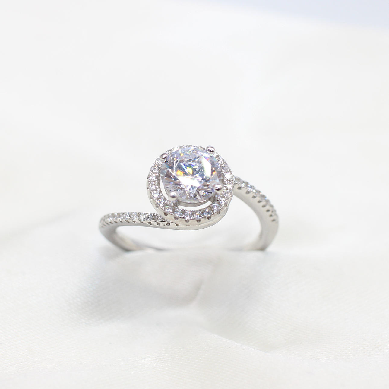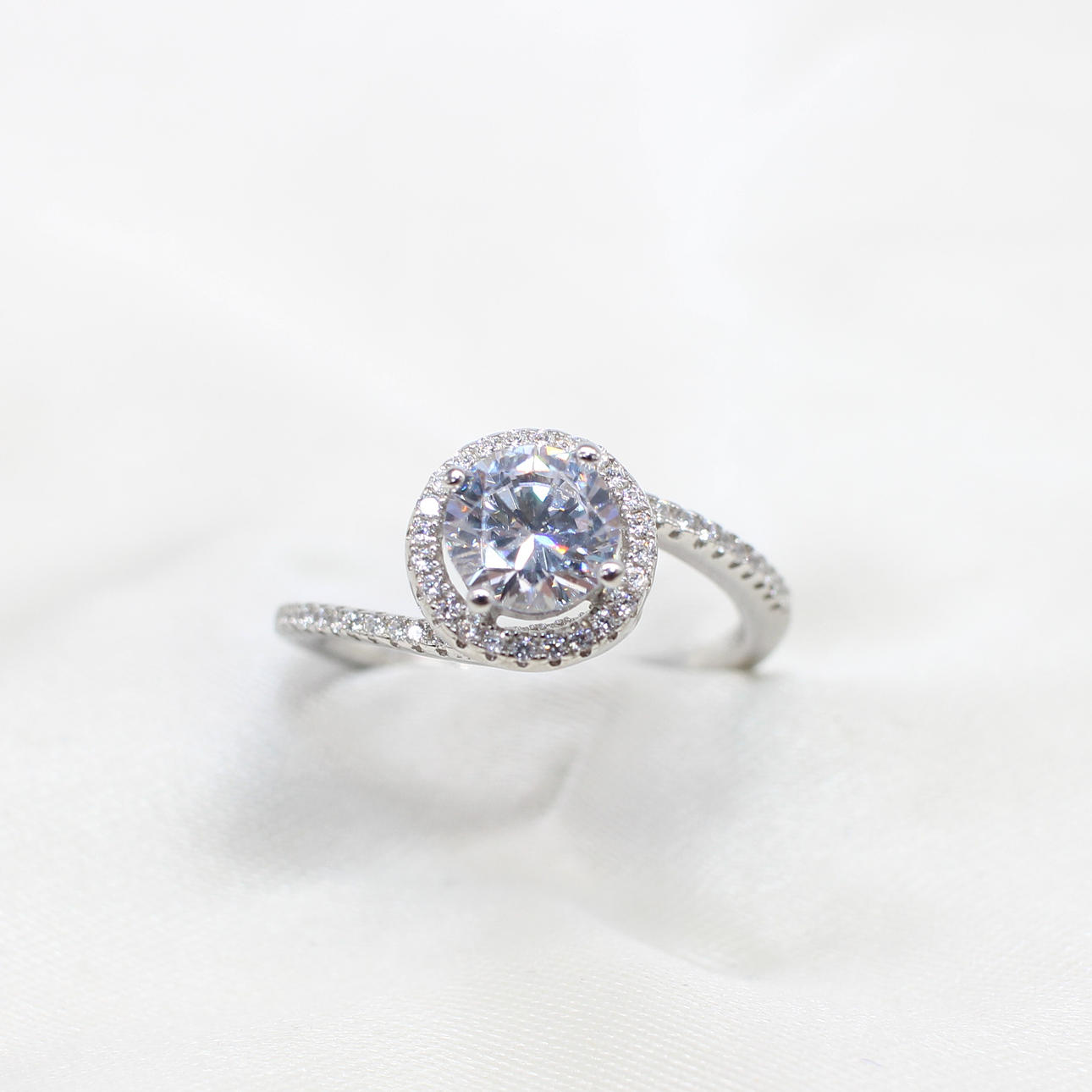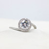 A Silver Ring (Stamped 925) Set With A Large Round Brilliant Cut Cubic Zirconia Surrounded By A Halo Of Cubic Zirconia.
