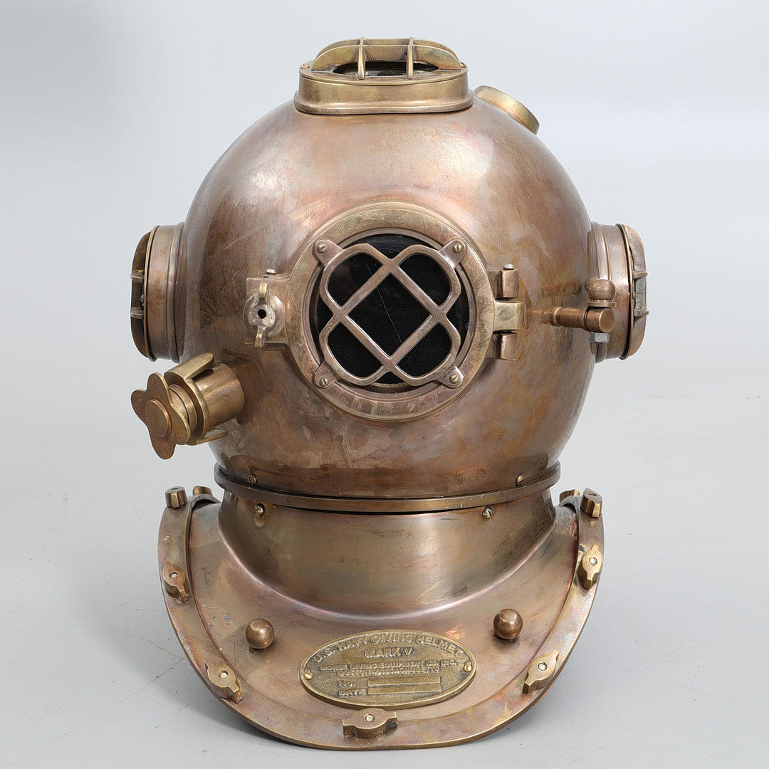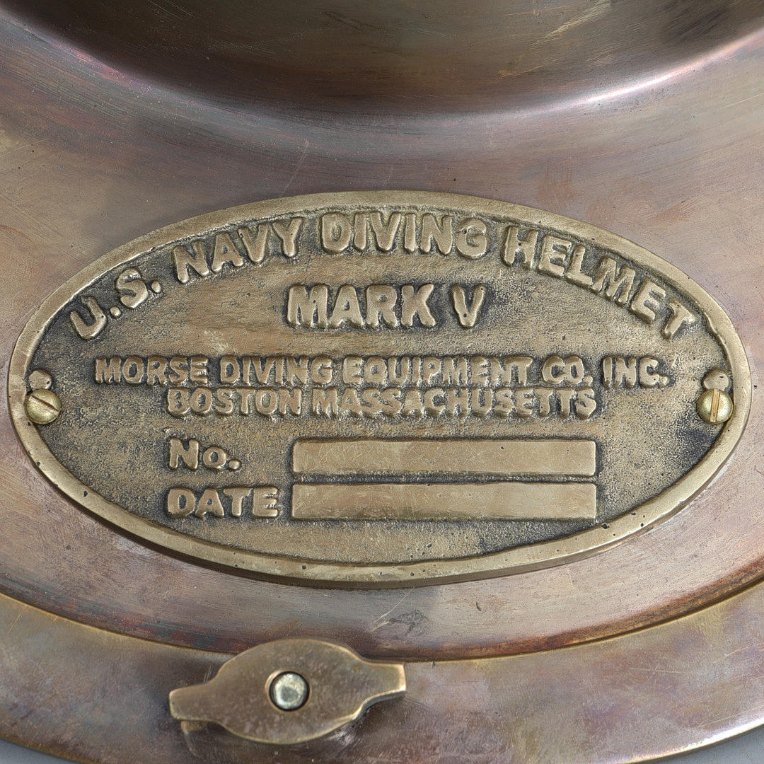 Plaque marked, U.S. navy diving helmet mark V. Morse Diving Equipment Co., Inc. Boston, Massachusetts