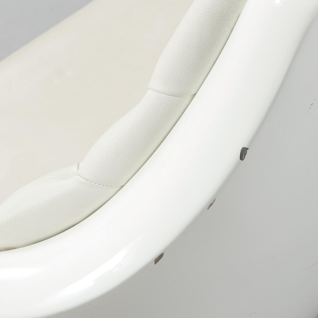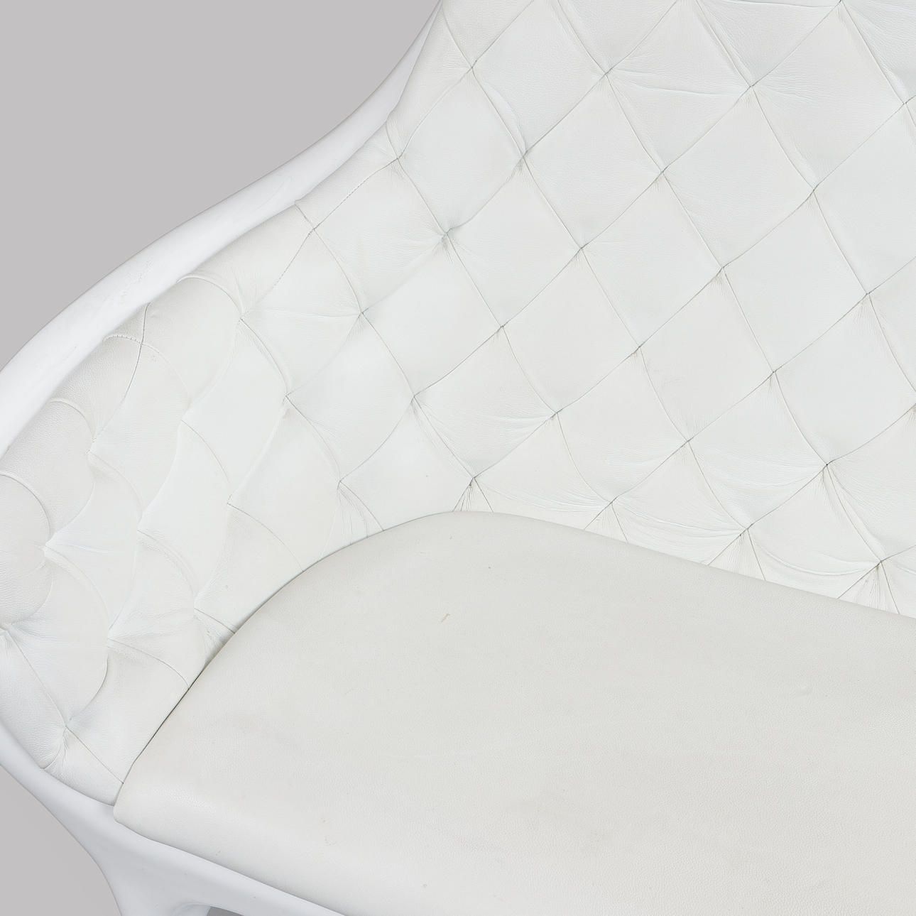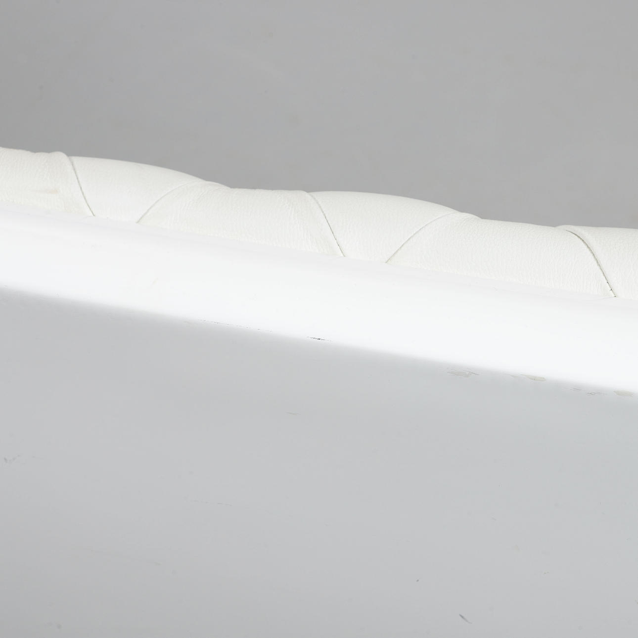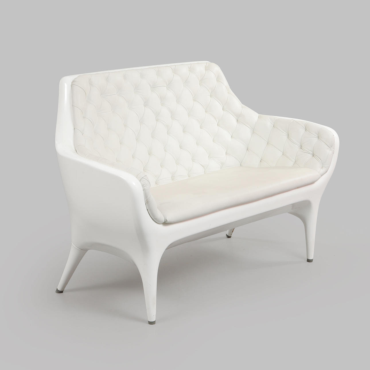 Frame in white lacquered molded plastic with white leather upholstery. Marked in the casting. Length approx. 145 cm, seat height approx. 47 cm, back height approx. 93 cm.