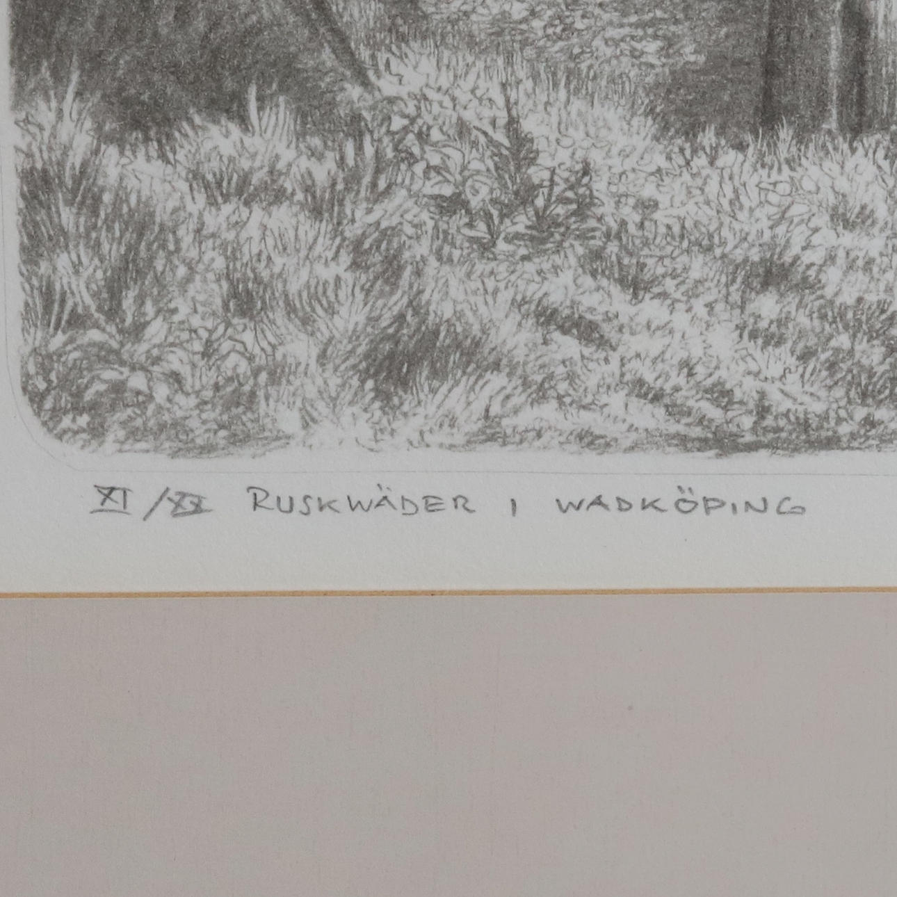 Marked XI/XX, limited edition, "Ruskäder i Wadköping”, signed in print. Gold-colored frame, dimensions: 72,5 x 57,5 cm.