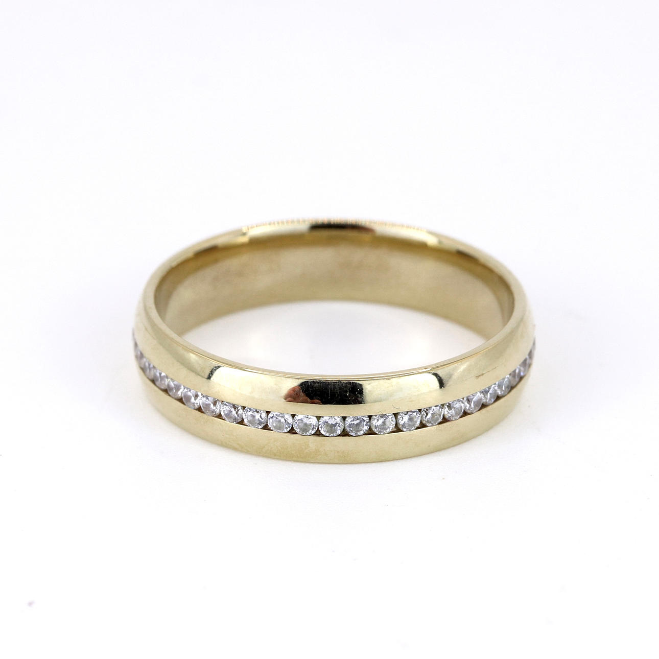 A 9ct yellow gold set with cubic zirconias. UK ring size: Q,5.