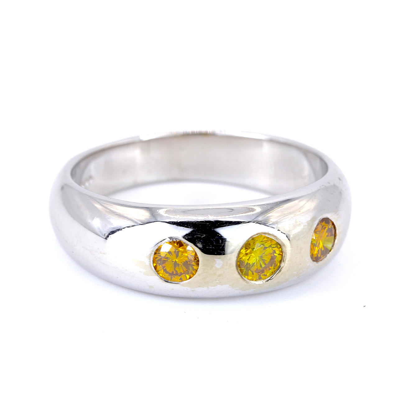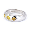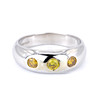 A 9ct white gold signet ring set with fancy yellow diamonds. Dia. total: 0.6ct approx. Clarity: VS-SI.