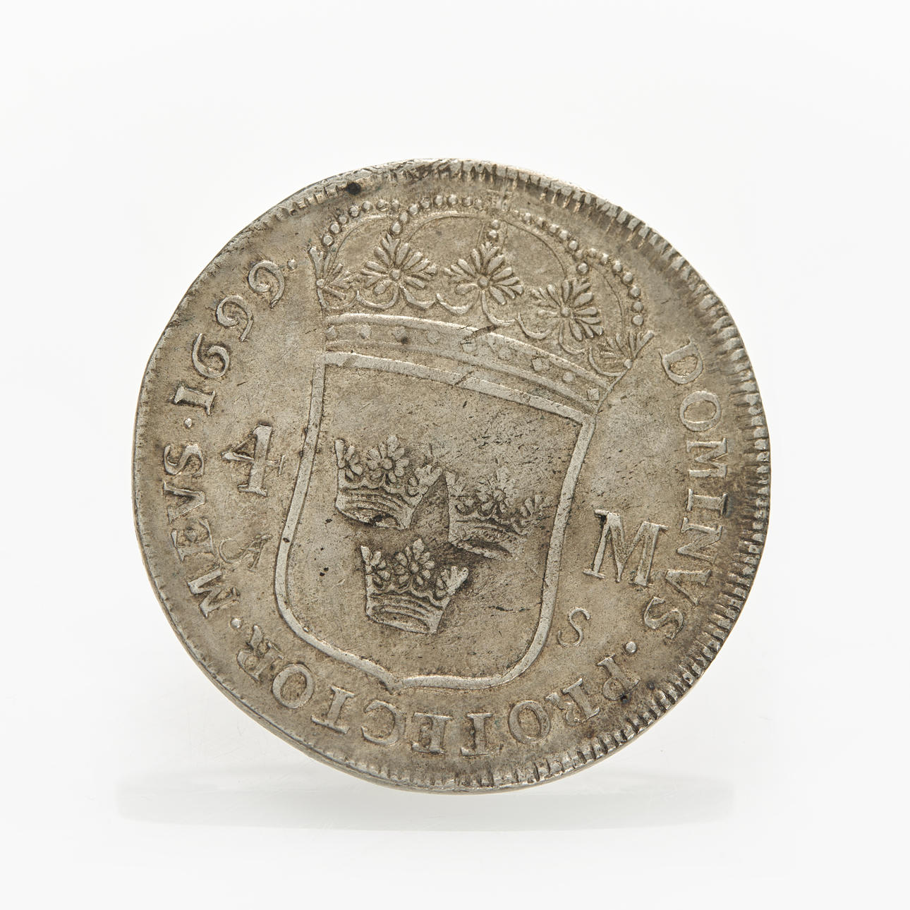 4911465. CHARLES XII 4 mark 1699, full cloak.