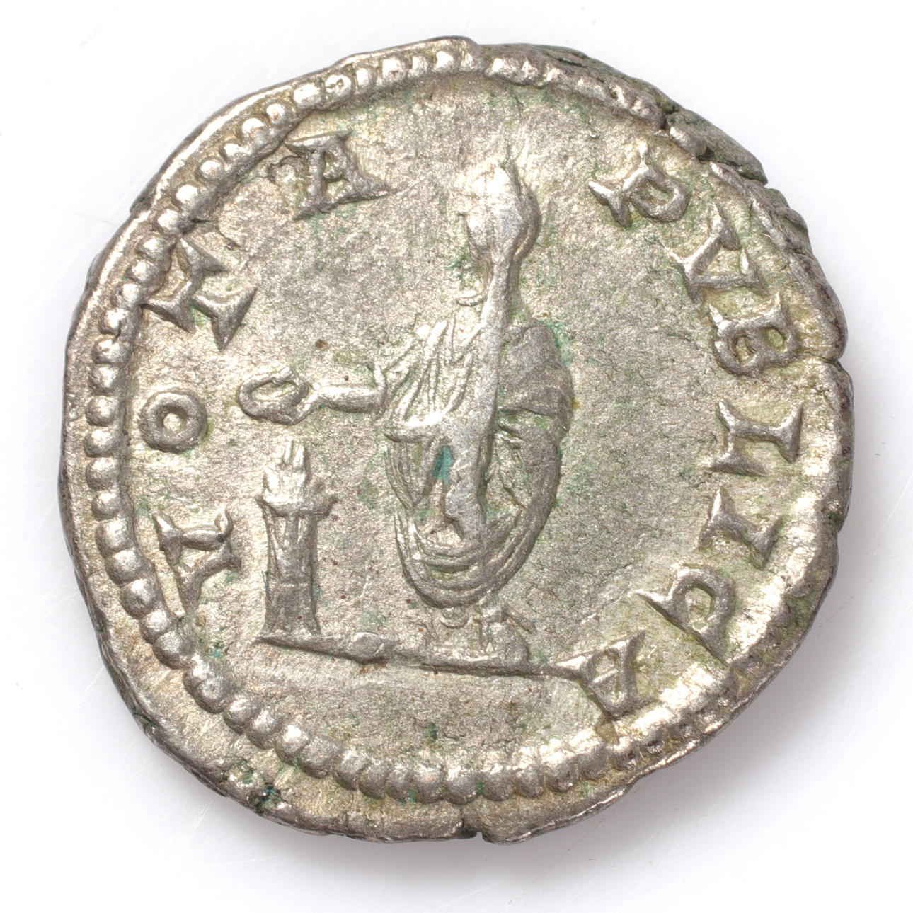 A silver coin, Roman, Geta, 209-211 AD.