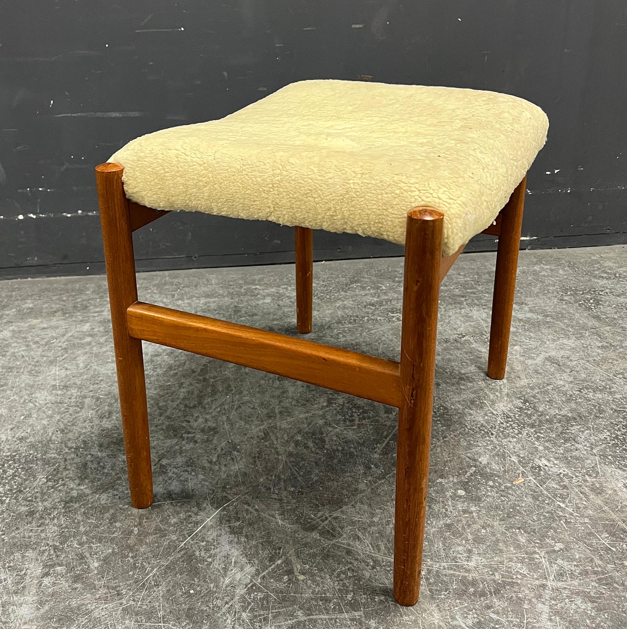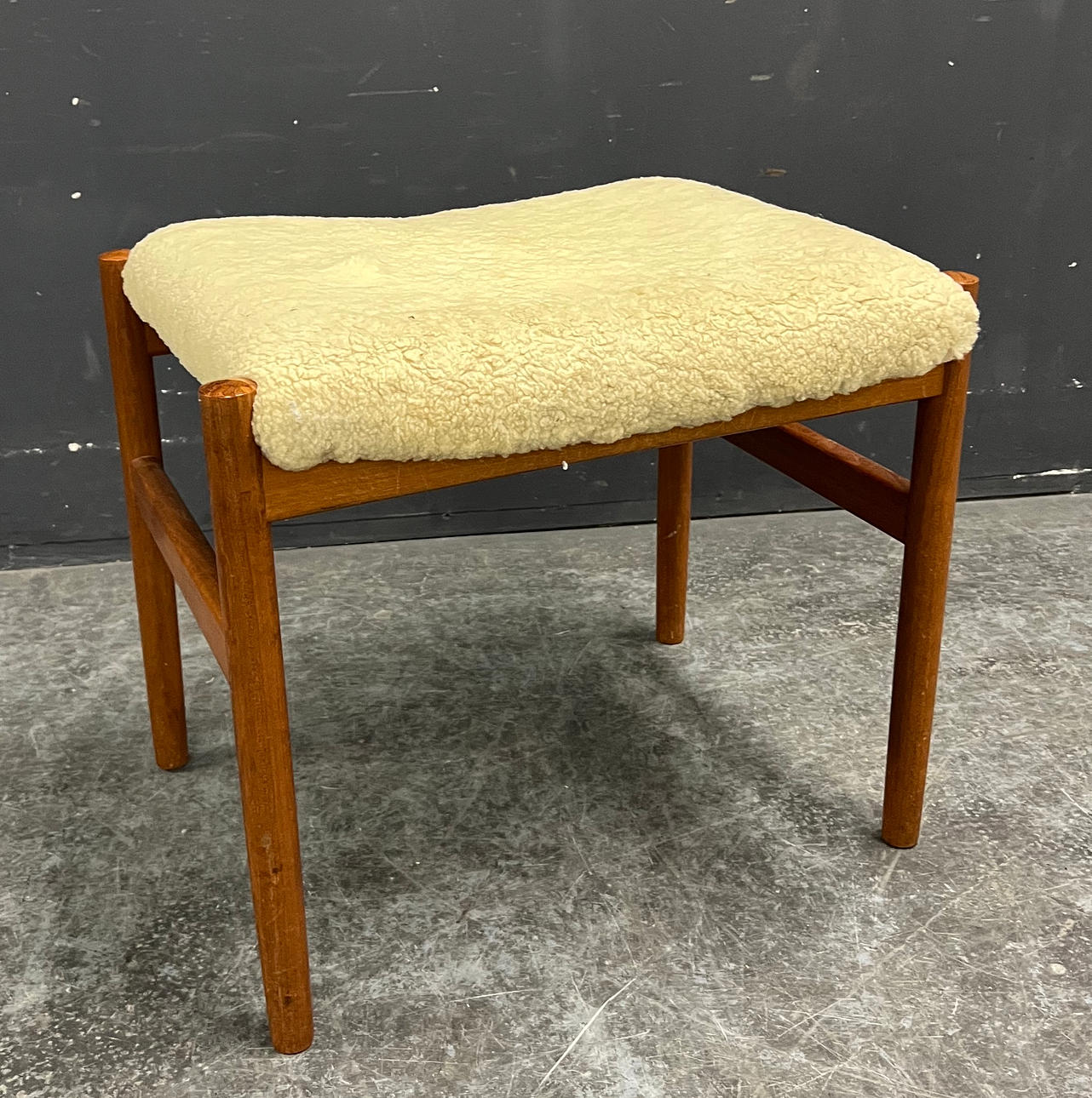 Teak wood probably covered with sheepskin.