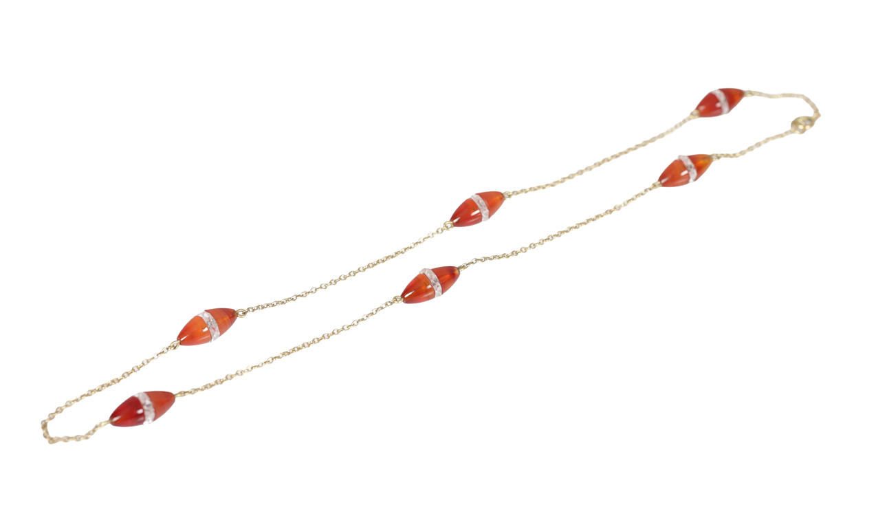 4912636. A VINTAGE AGATE STATION NECKLACE.