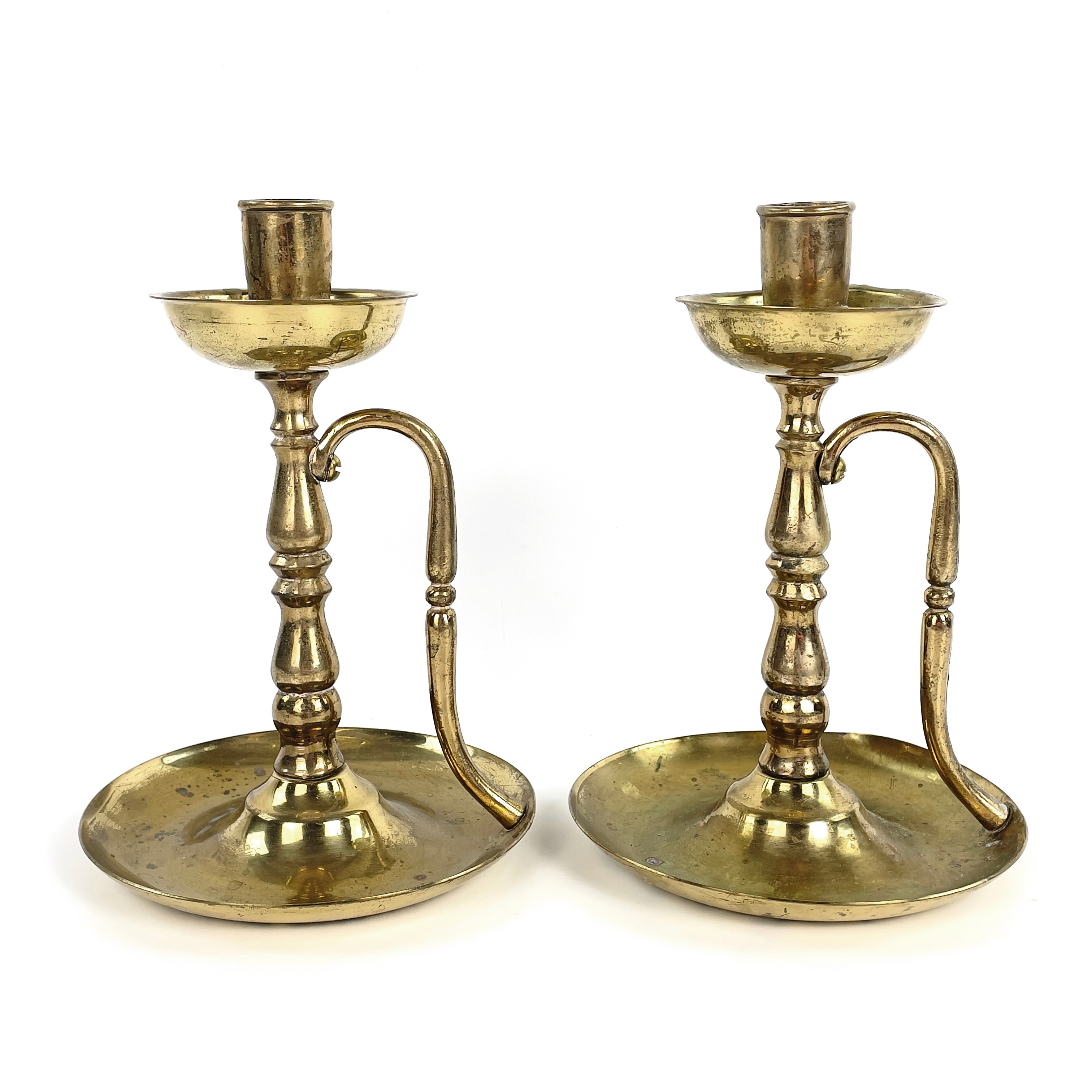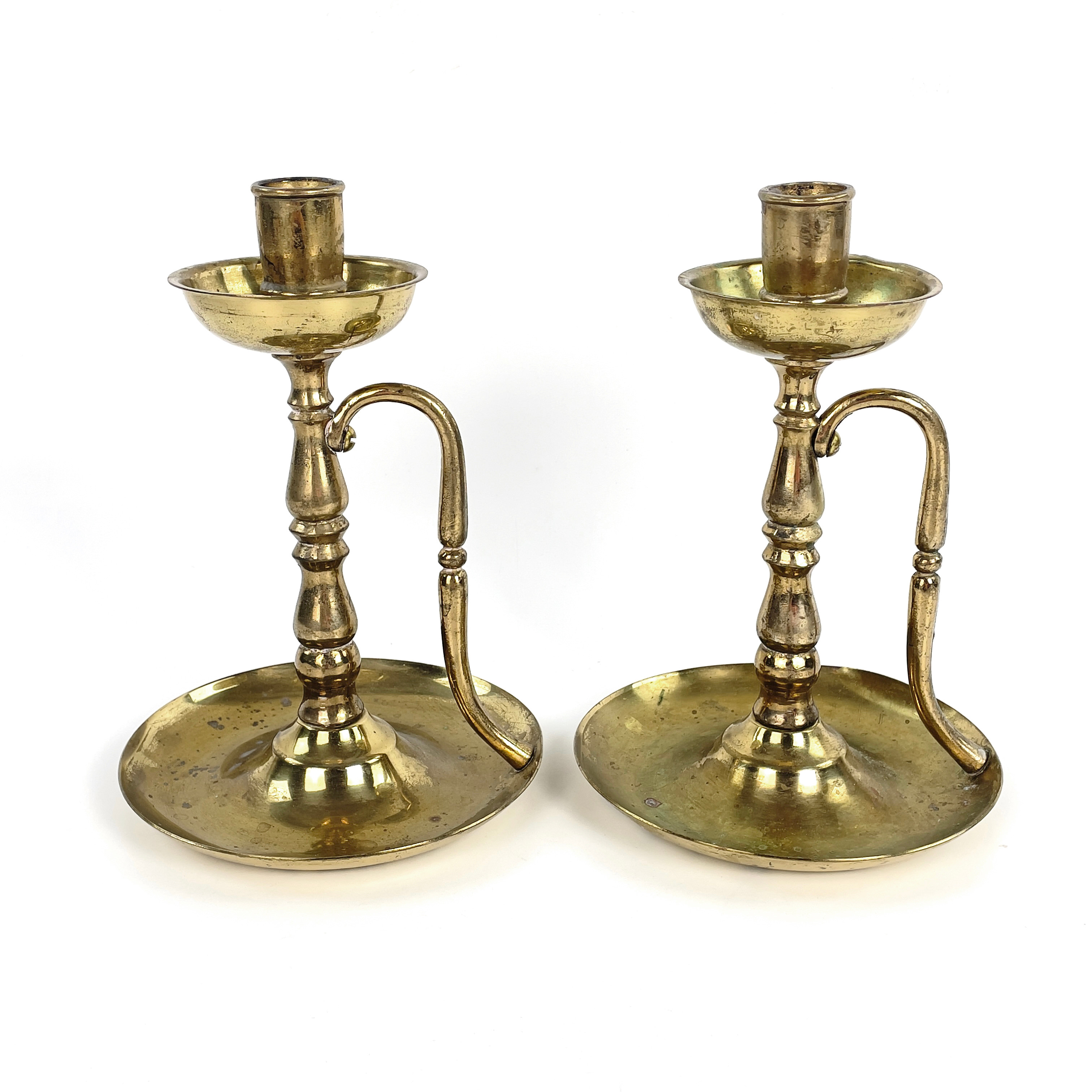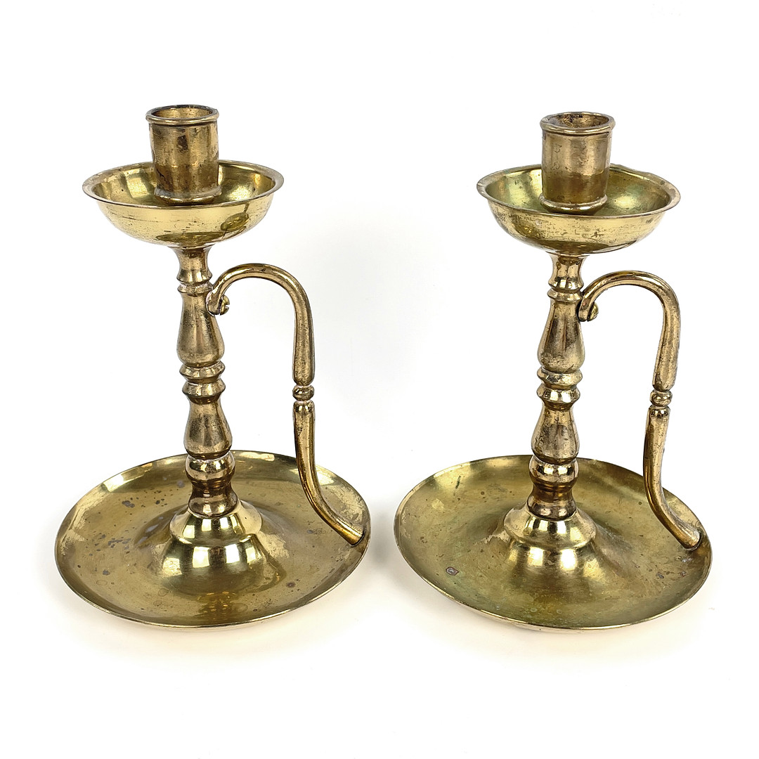 4912902. A pair of brass candlesticks, 20th century.