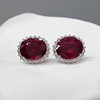 RUBY & DIAMOND oval cluster ear studs.
