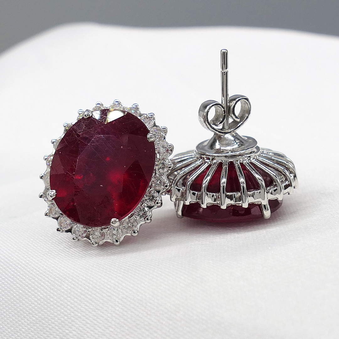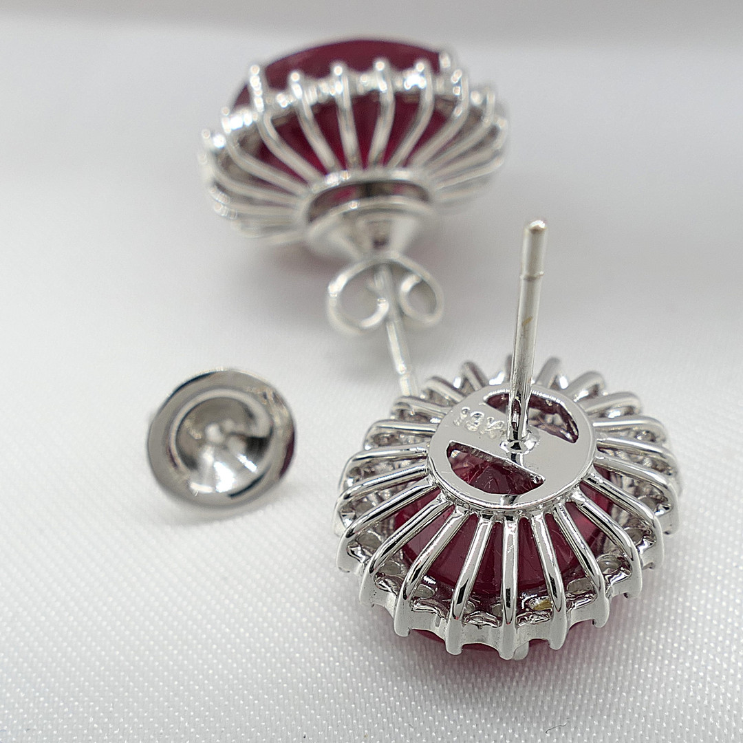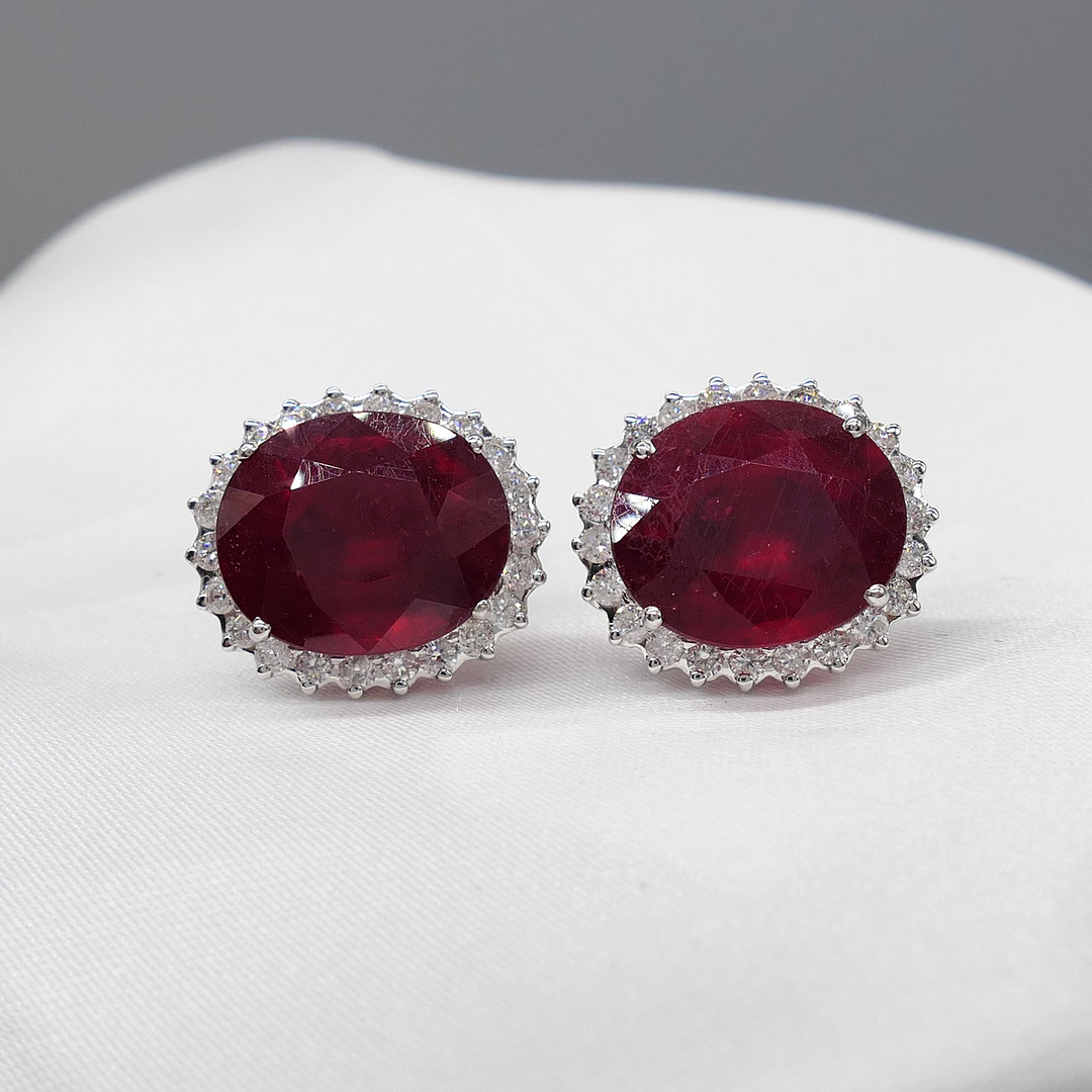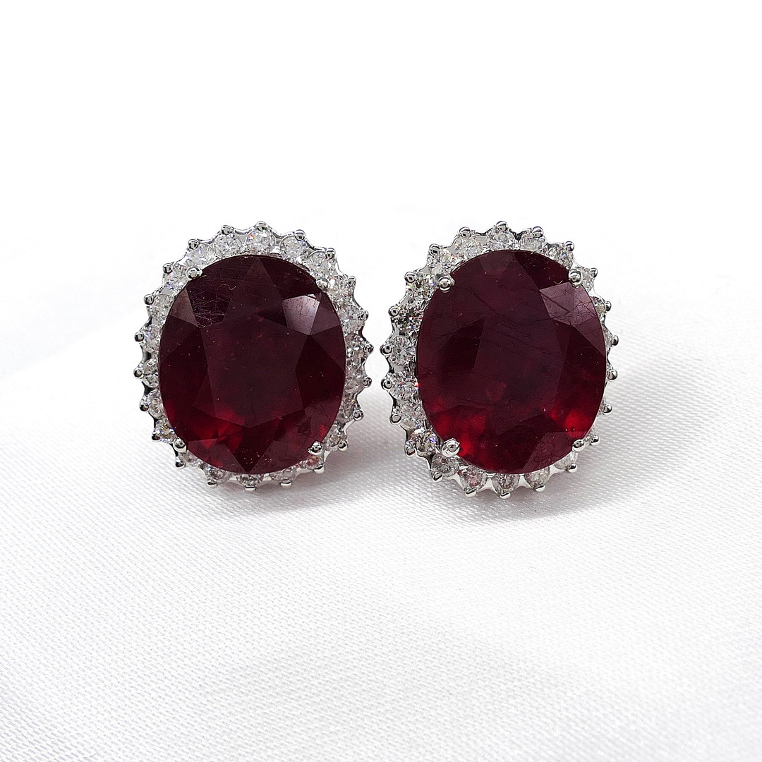 4913131. RUBY & DIAMOND oval cluster ear studs.