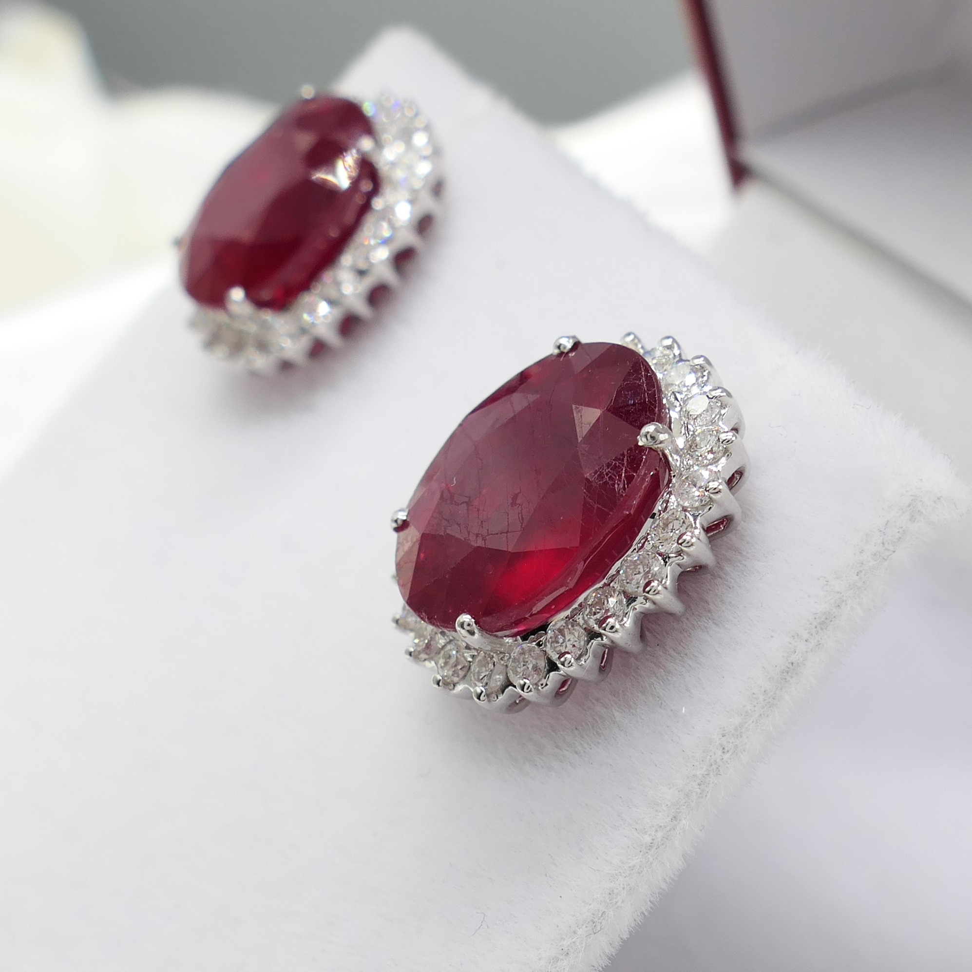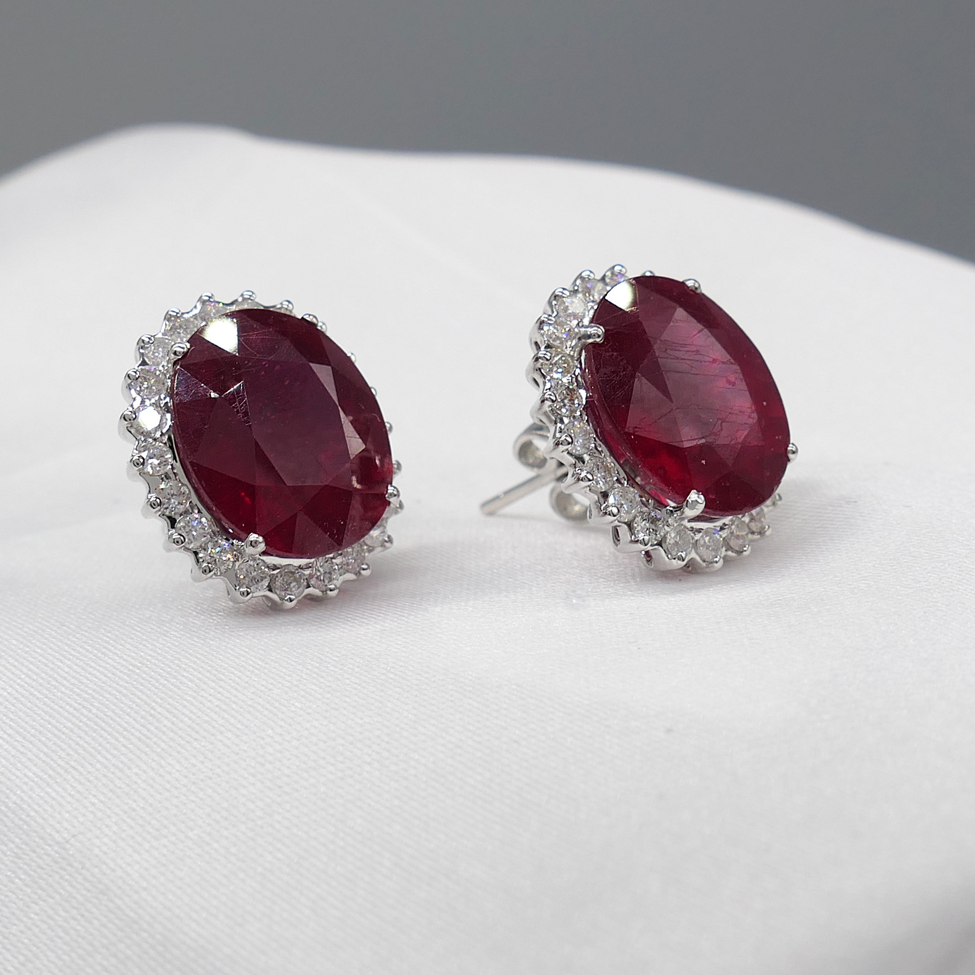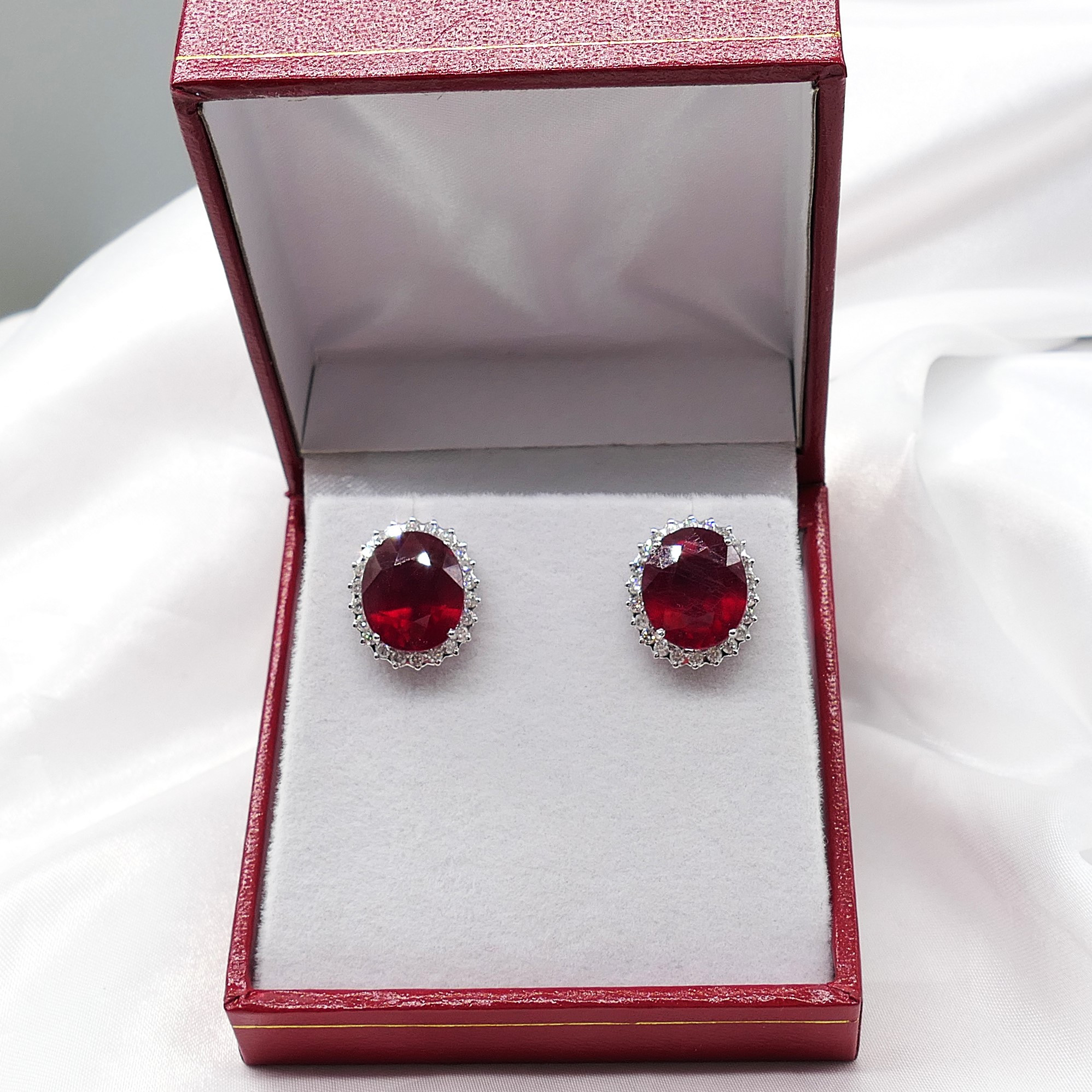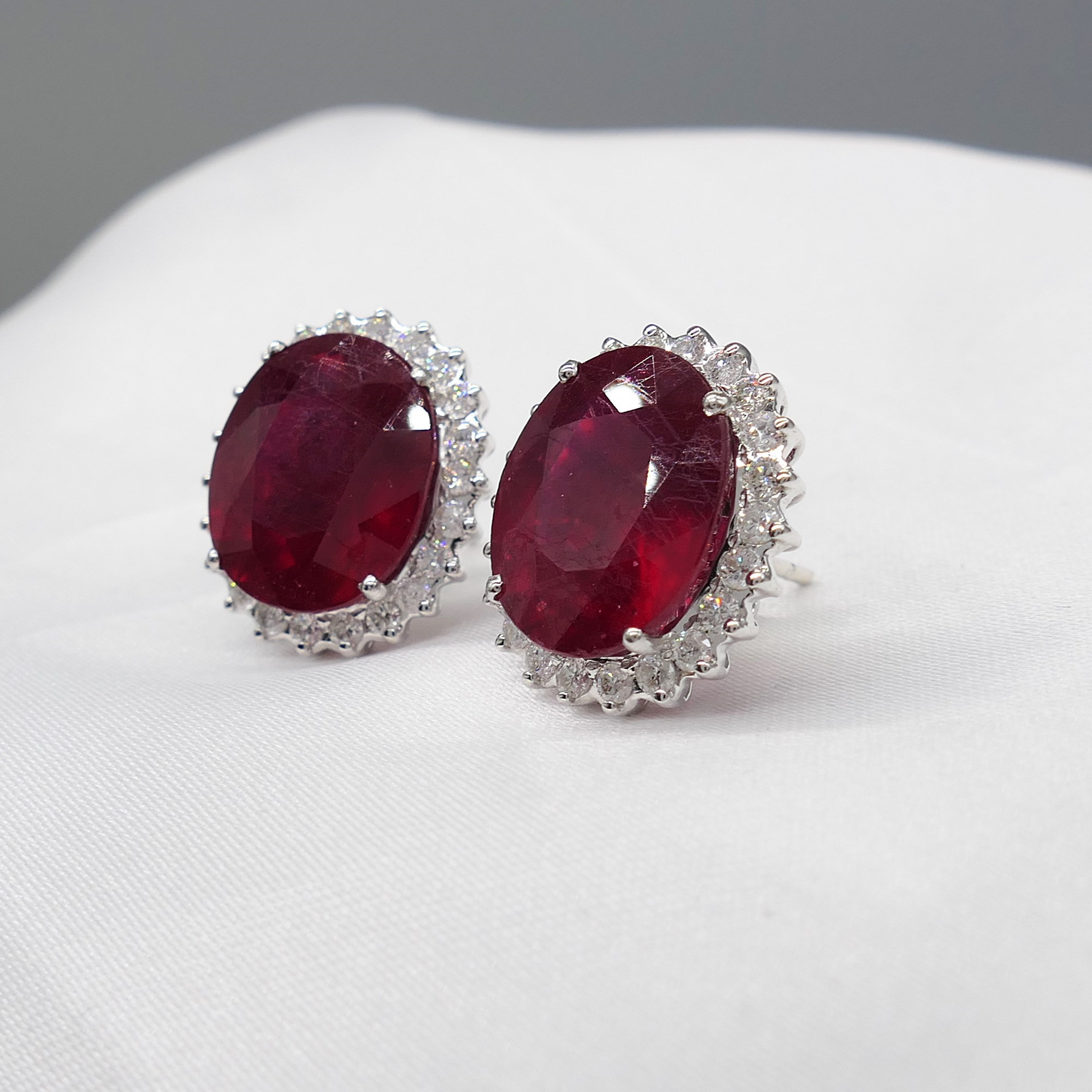 4913131. RUBY & DIAMOND oval cluster ear studs.