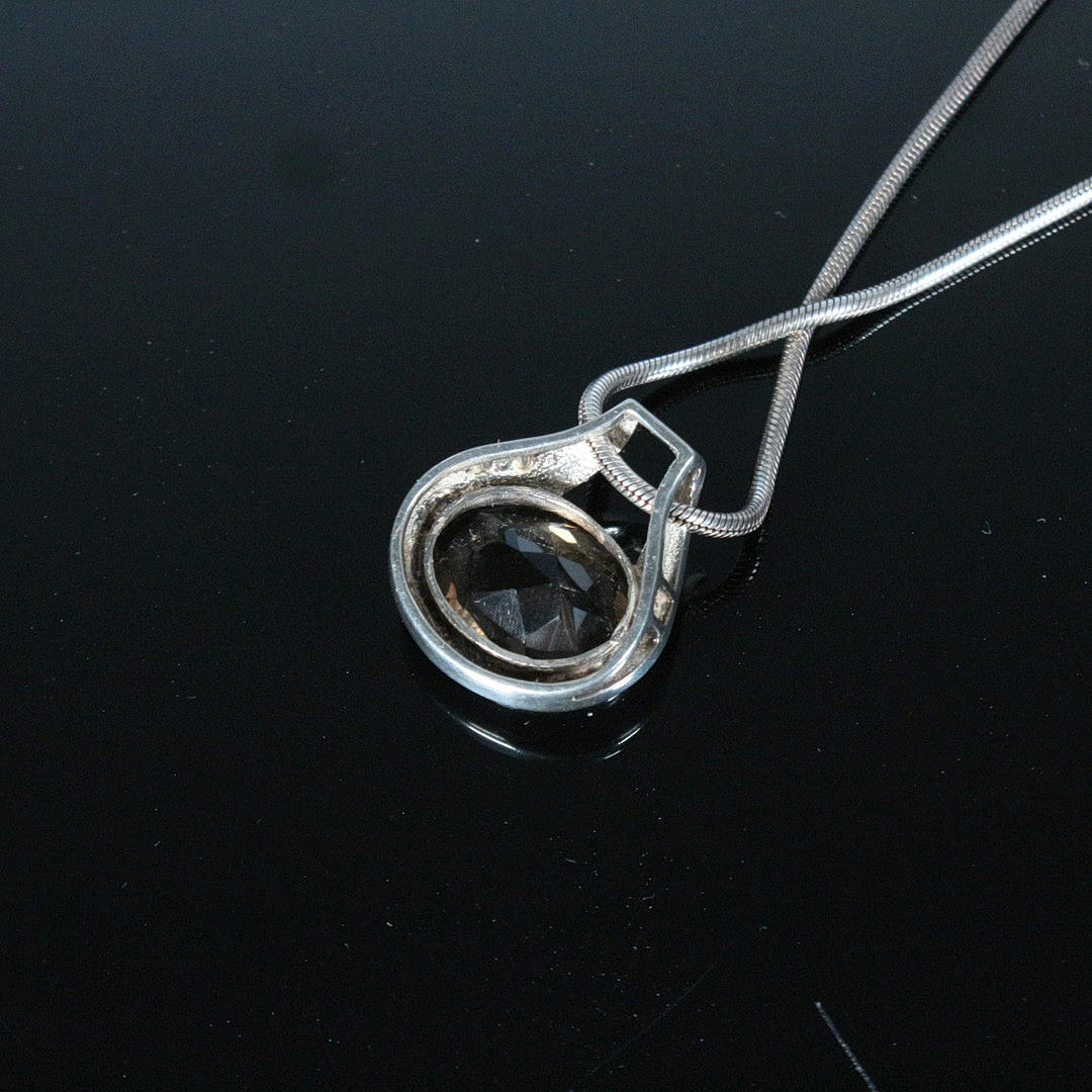 Necklace/snake chain with smoked qaurz pendant, made of 925 silver. Smoky quartz with ca. 8.5 carats.
