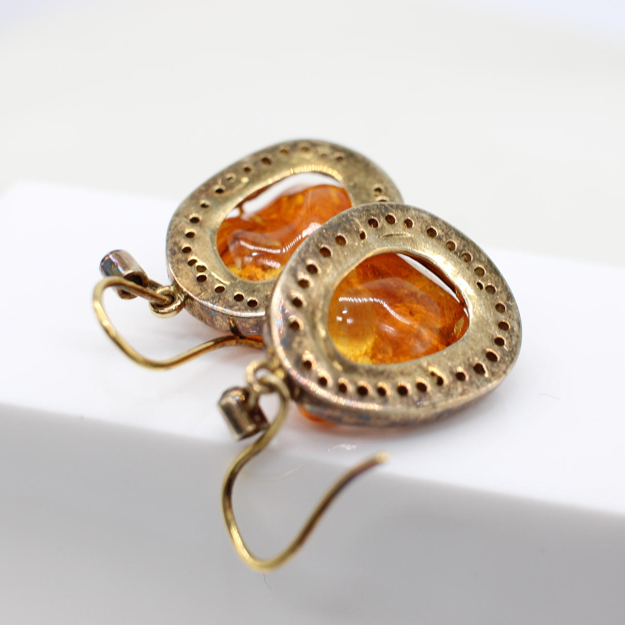 This pair of earrings is crafted from silver gilt (tested 925) with hook through fasteners