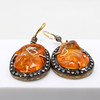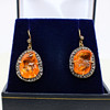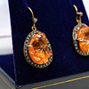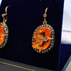 A pair of unusual, natural mandarin garnet and diamond set drop earrings.