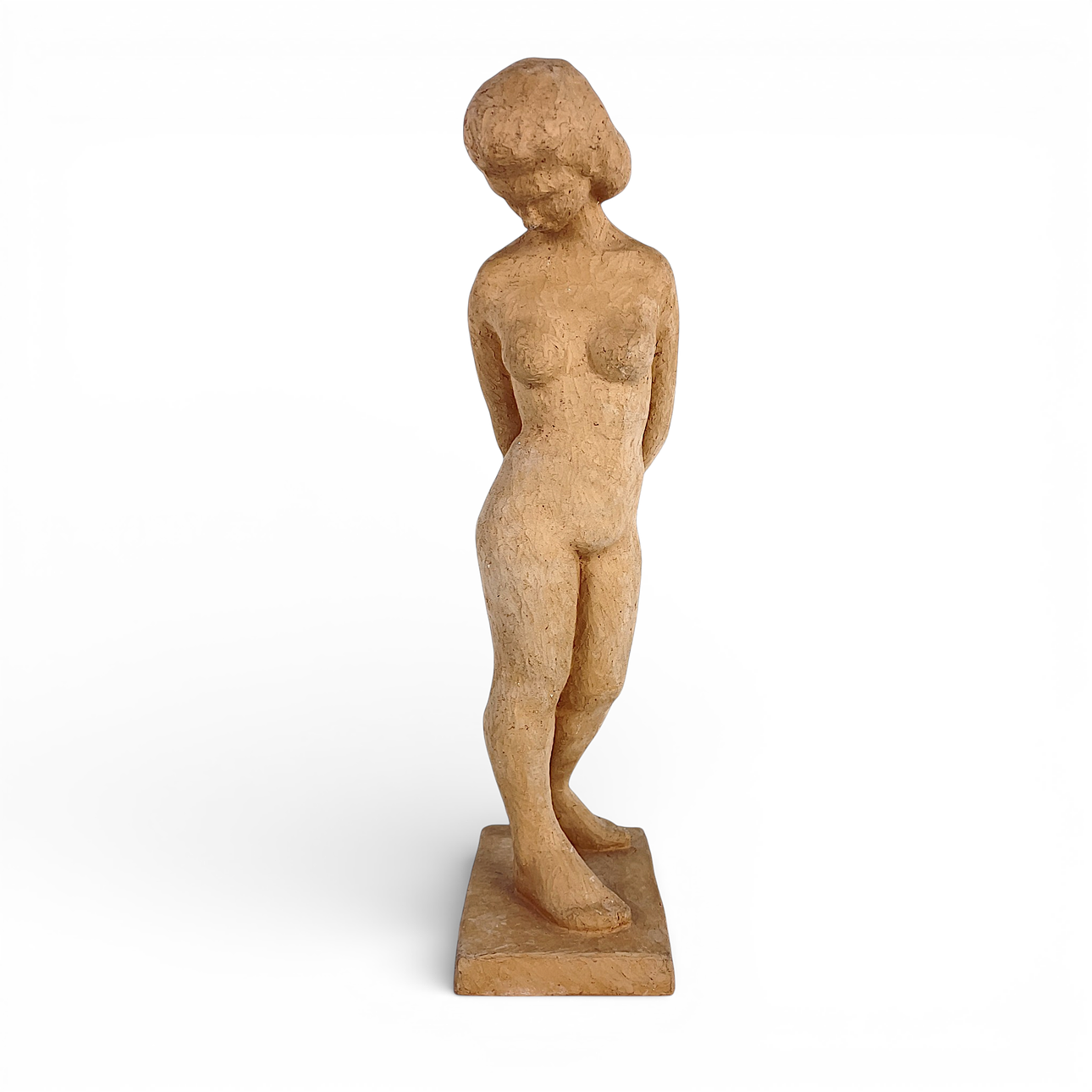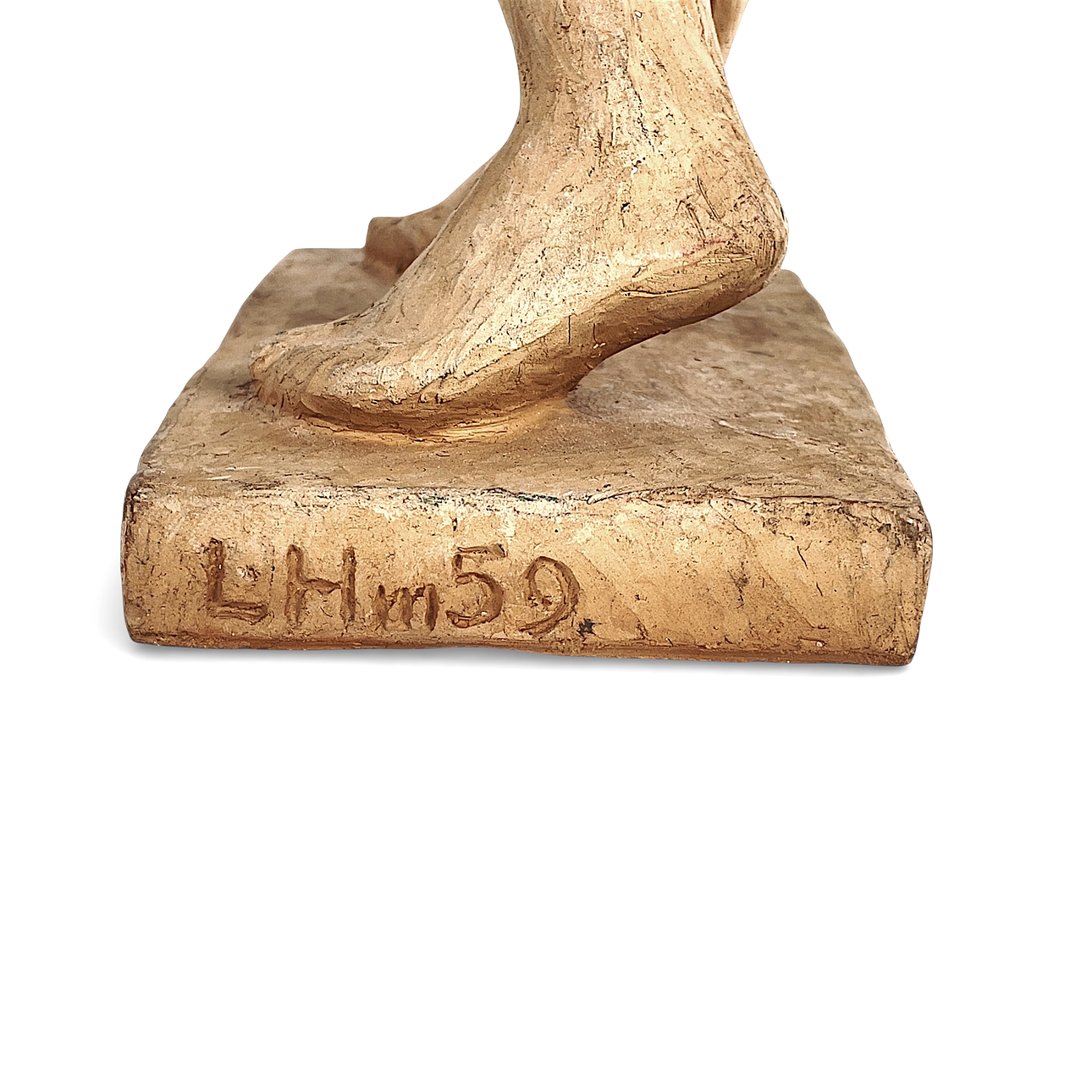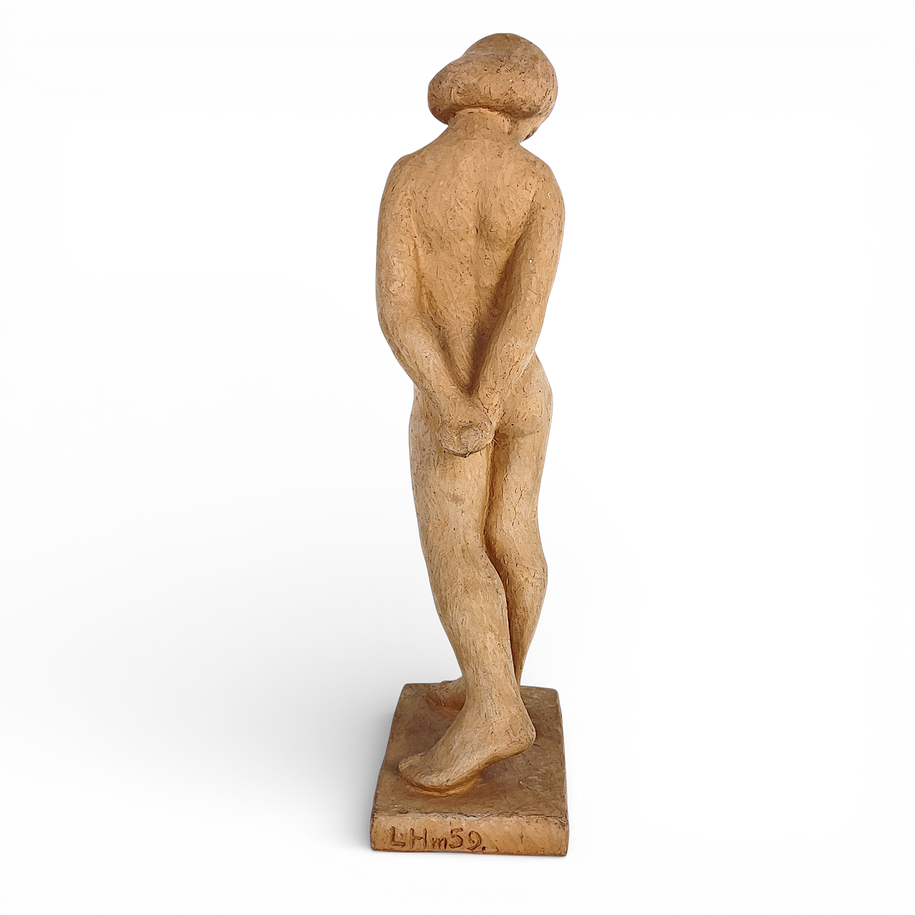 Sculpture in earthenware depicting a standing woman. Signed on plinth and underneath “L H m. 59"