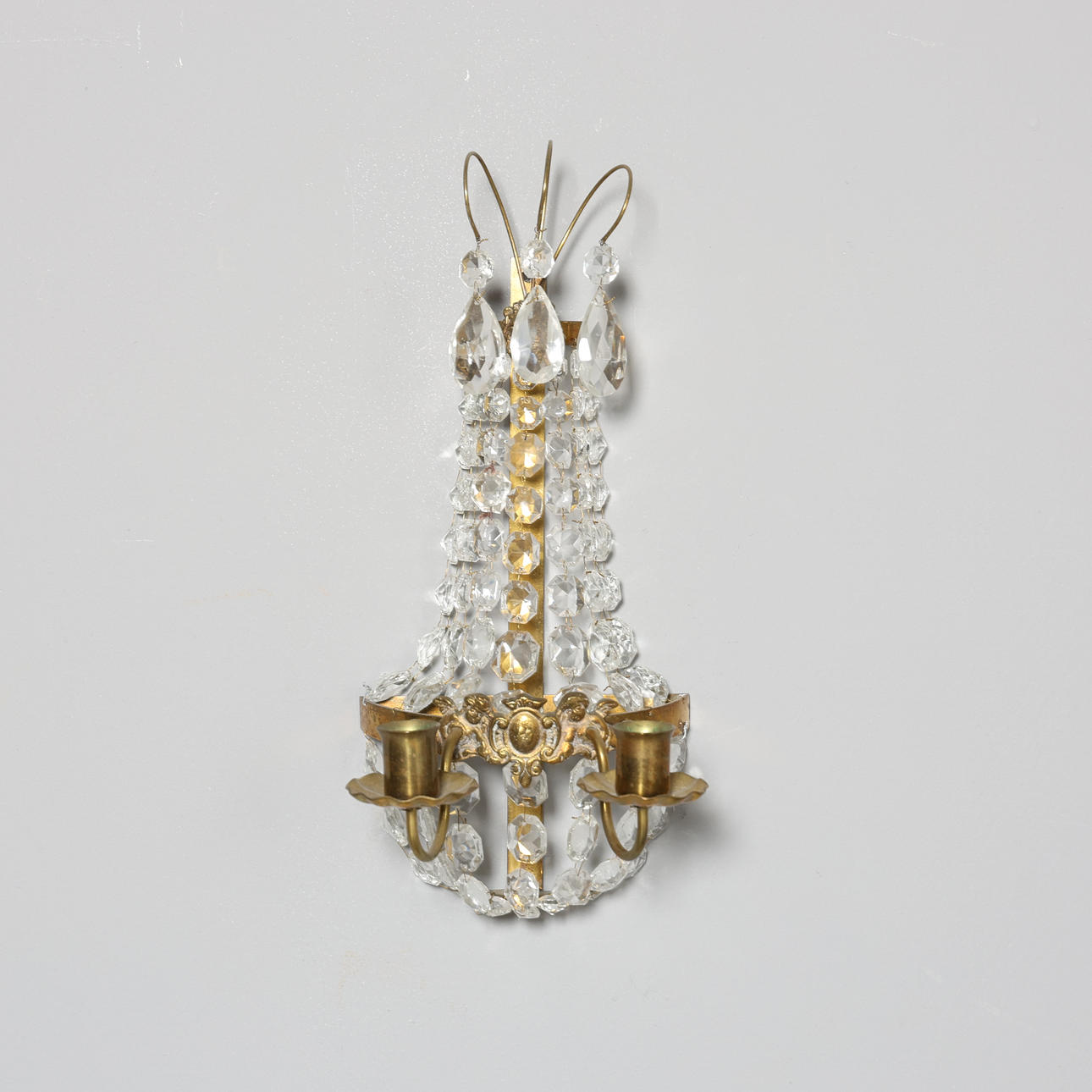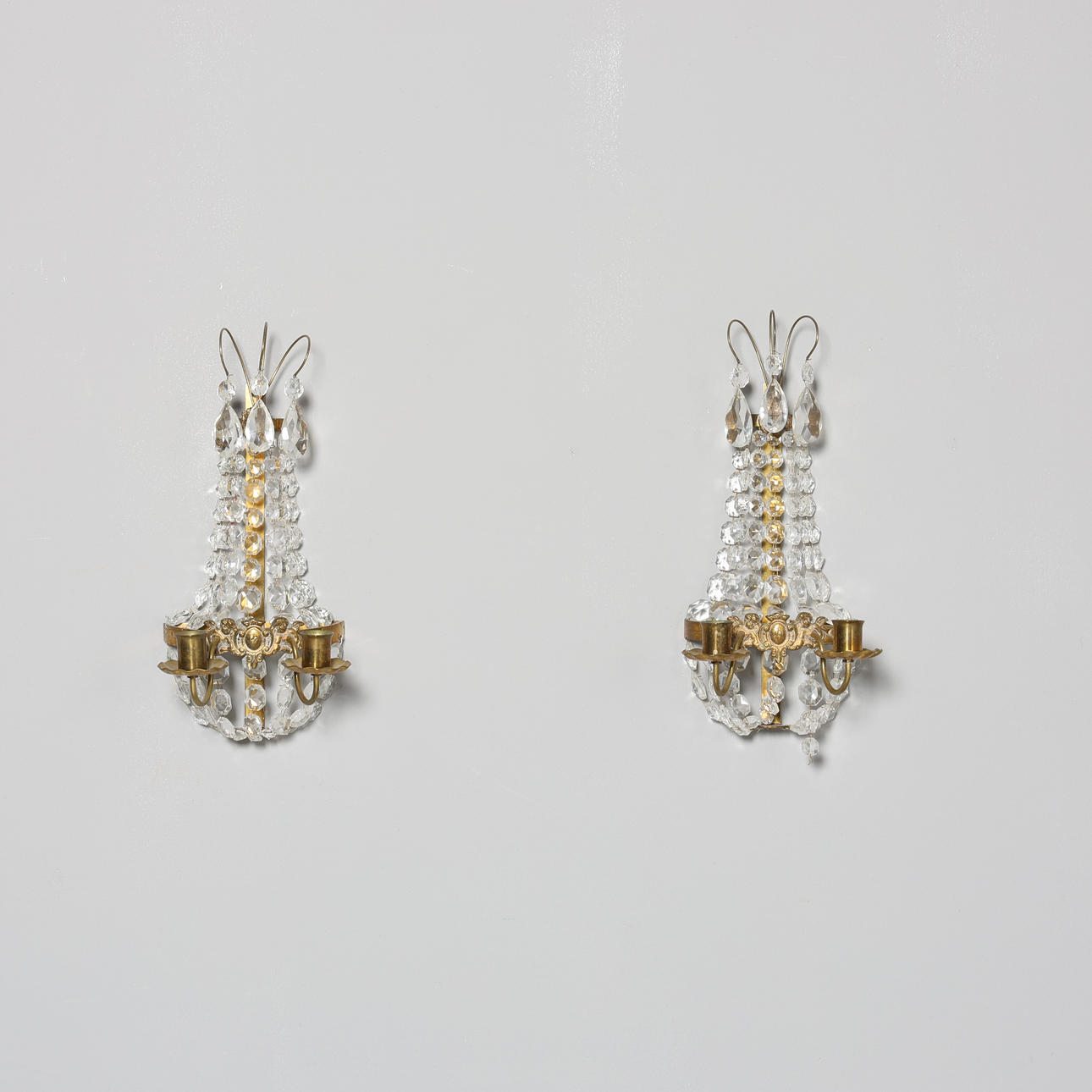 Wall lights, 1 pair, brass and prisms.