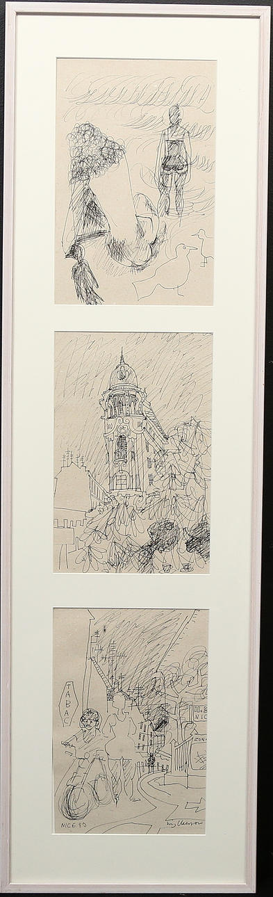 4914464. STIG (SLAS) CLAESSON. Drawings, 3 pieces, in the same frame, signed and partly dated 93.