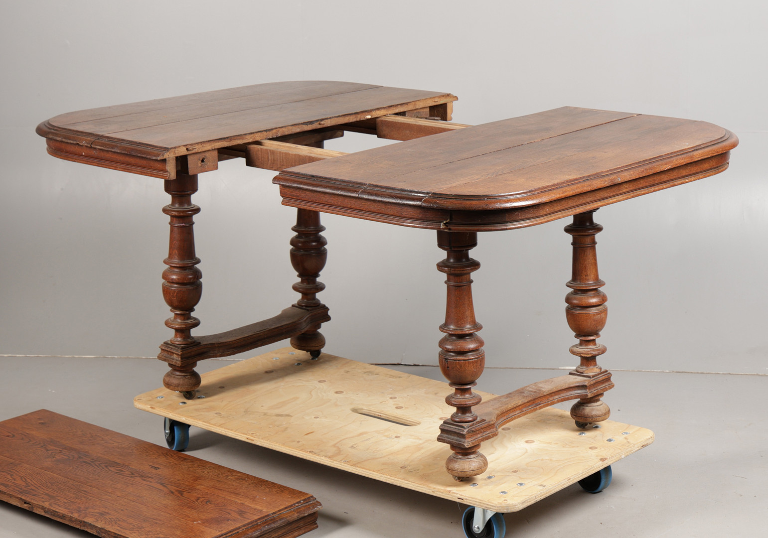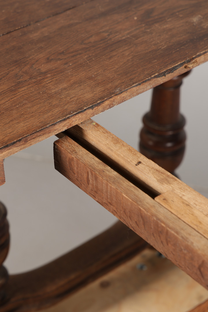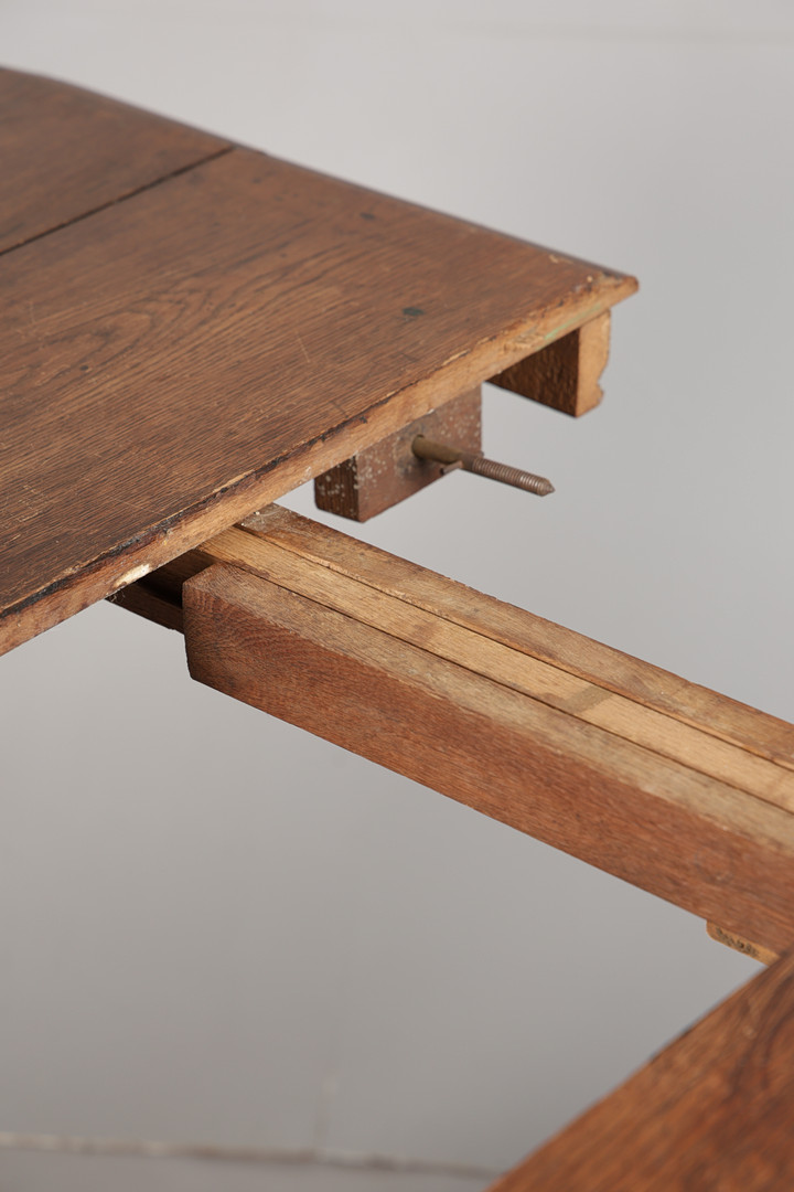 4914556. A FRENCH OAK EXTENDING DINING TABLE.