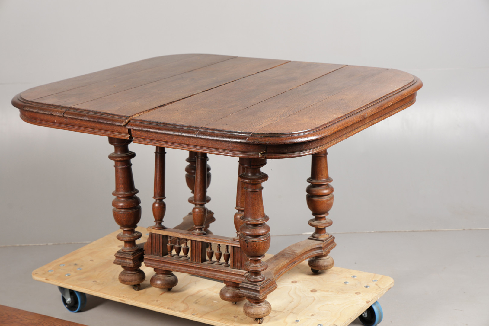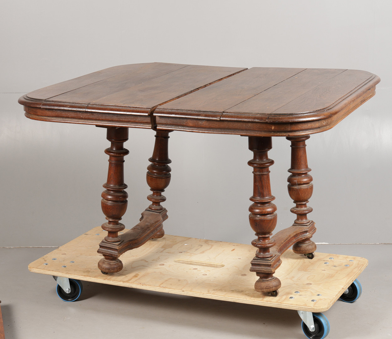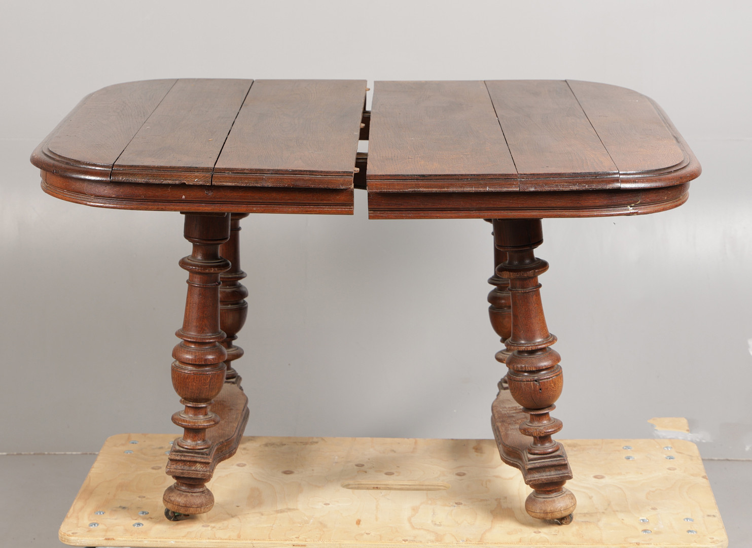 4914556. A FRENCH OAK EXTENDING DINING TABLE.