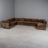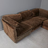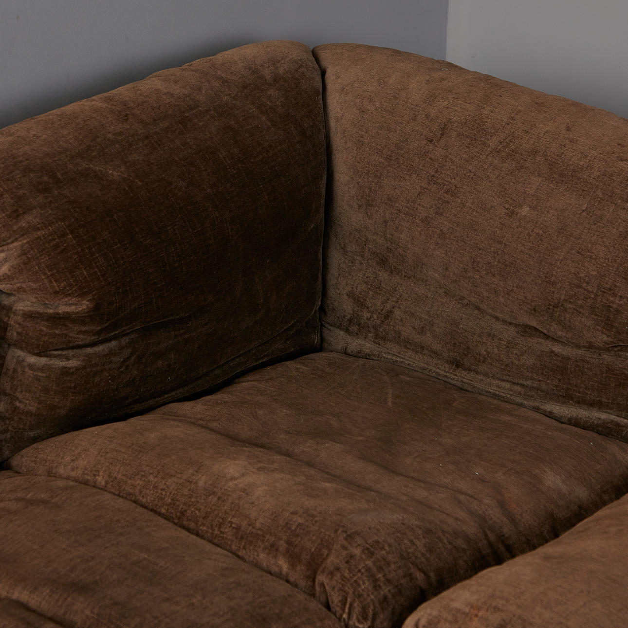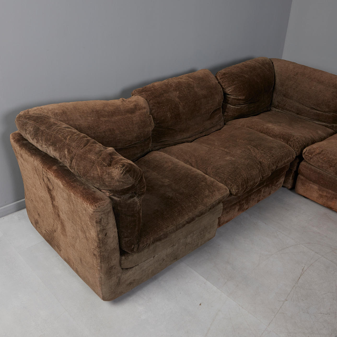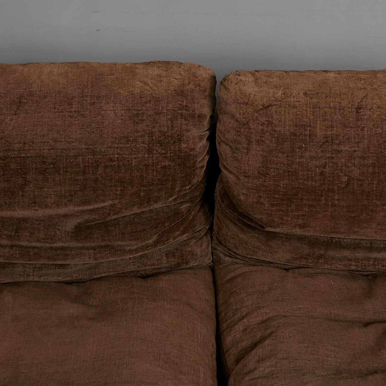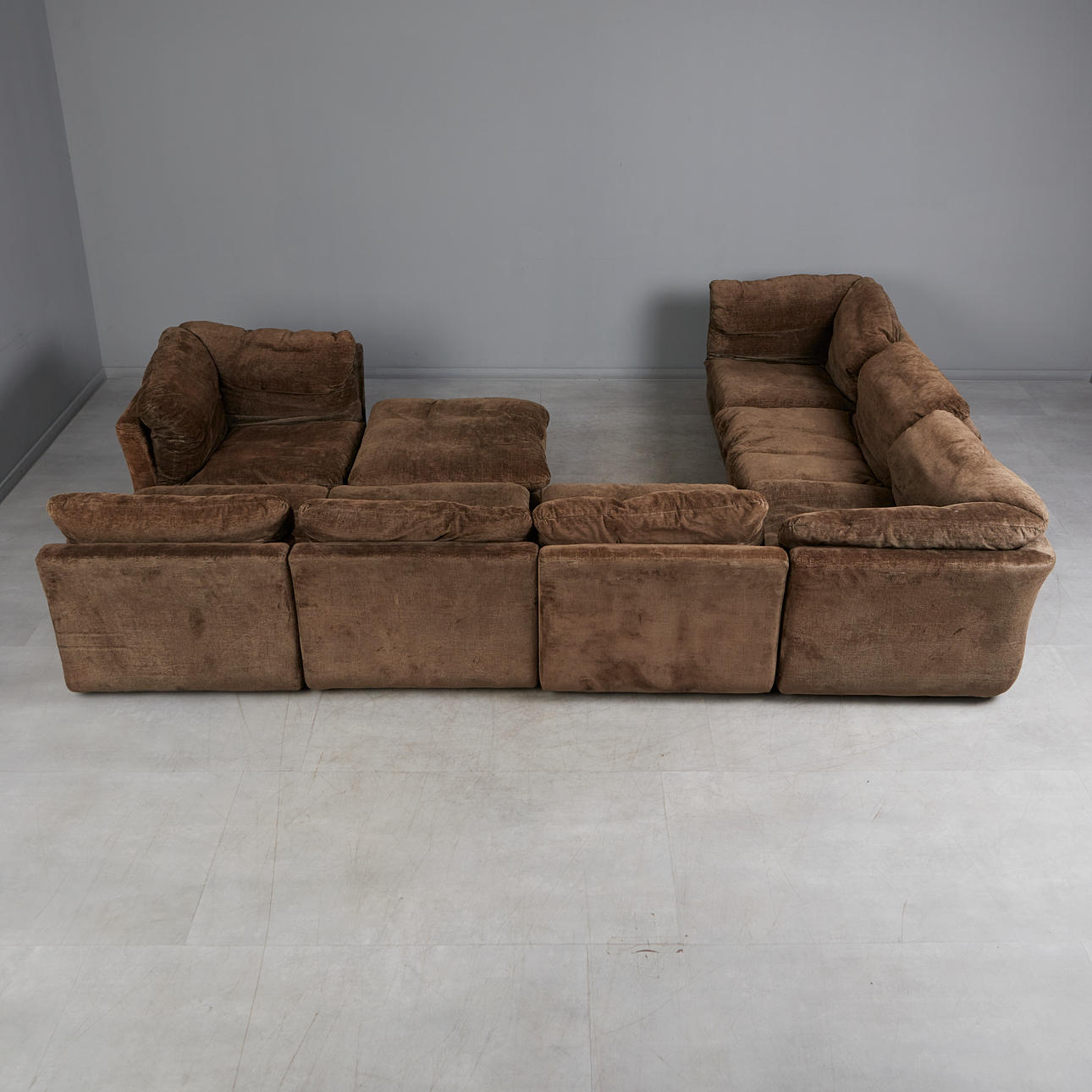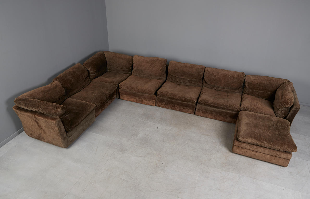 8-piece modular sofa with upholstered construction and loose seat and back cushions with brown fabric upholstery, zippered upholstery, including three corners and a footrest, black plastic protectors, each: H.68cm, seat height: 37cm, W.80cm, D.80cm (8).