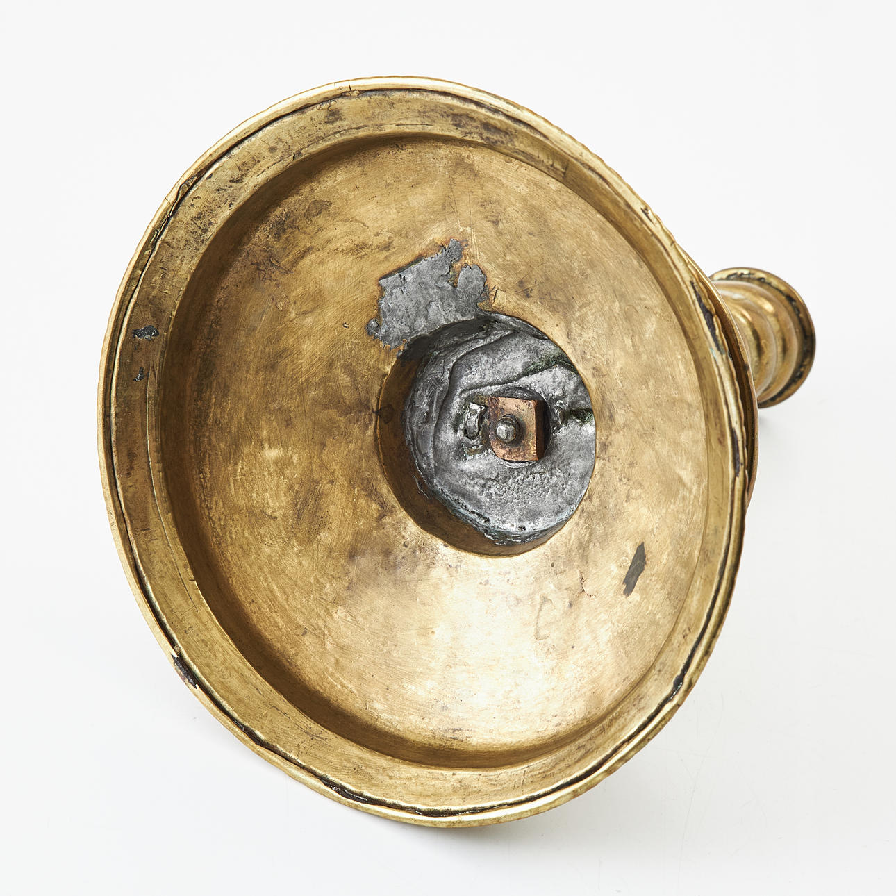 A 18th/19th century baroque candlestick, brass.