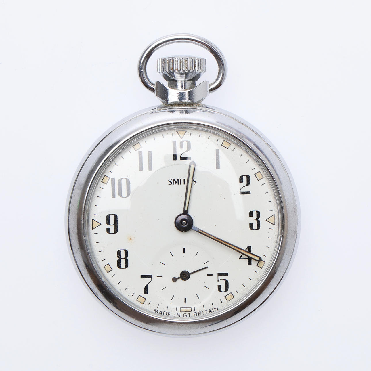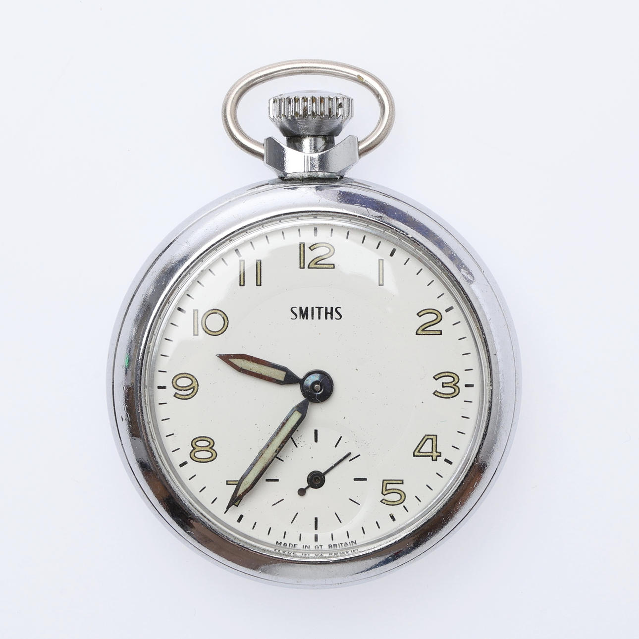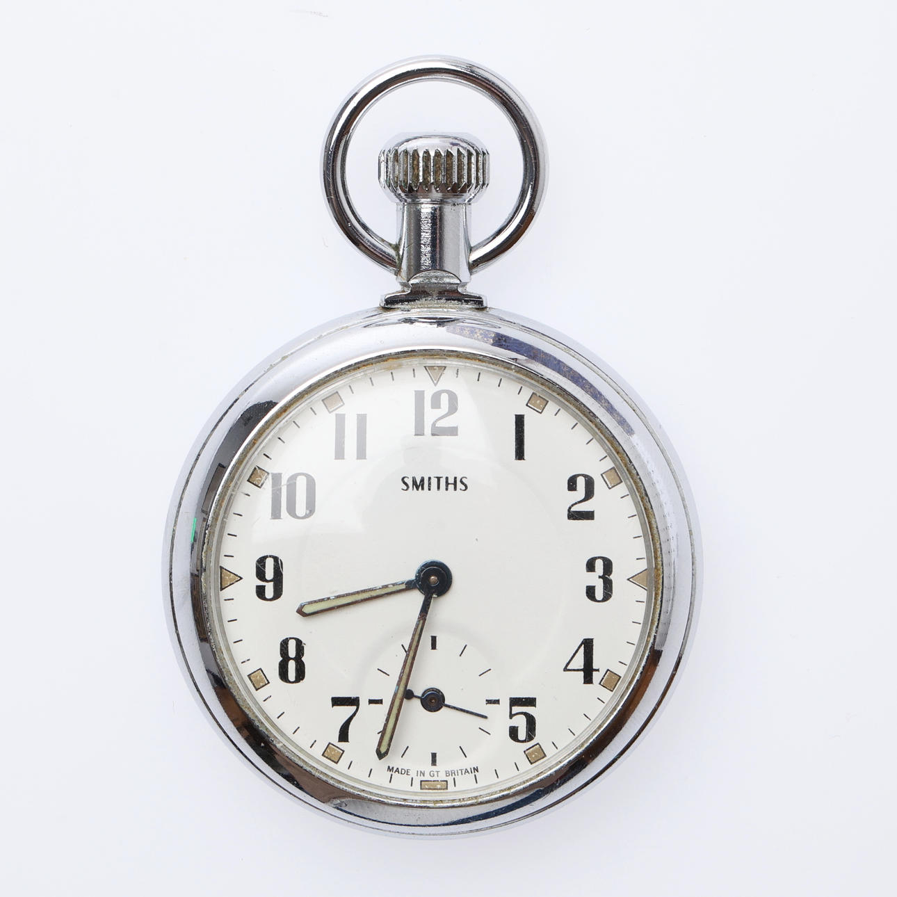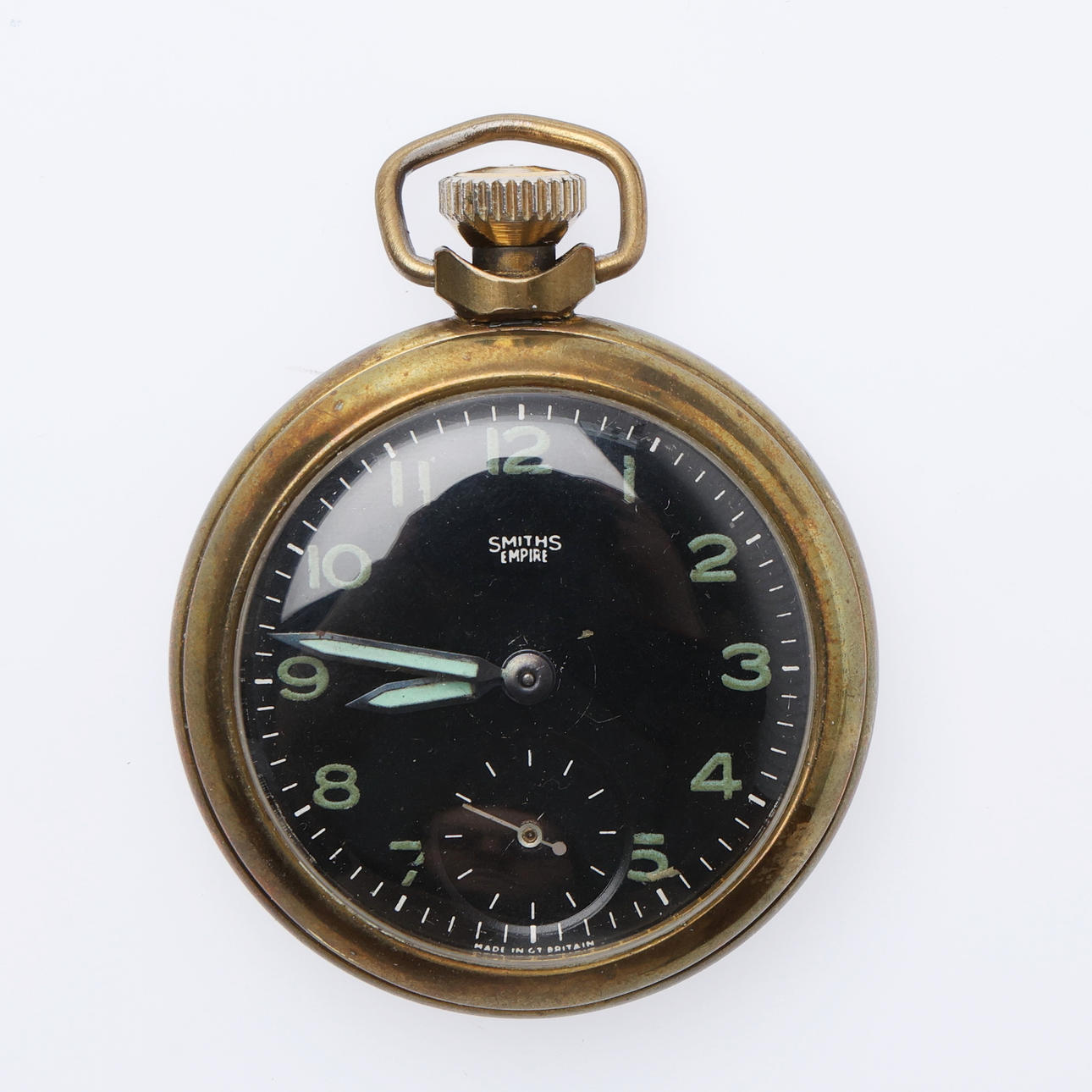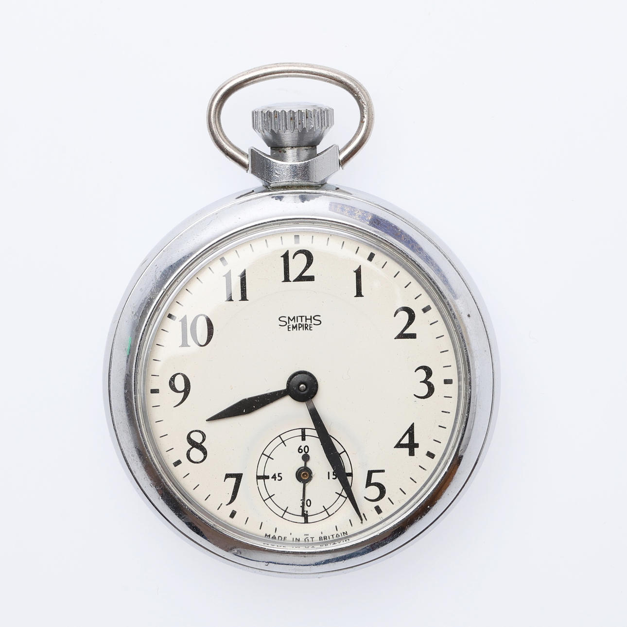 Each with a top wind movement, including 6 "Empire" examples, all but one with white/cream dials, in chromed cases, the last with a black dial in a brass case, Dia.50mm approx. (10).
