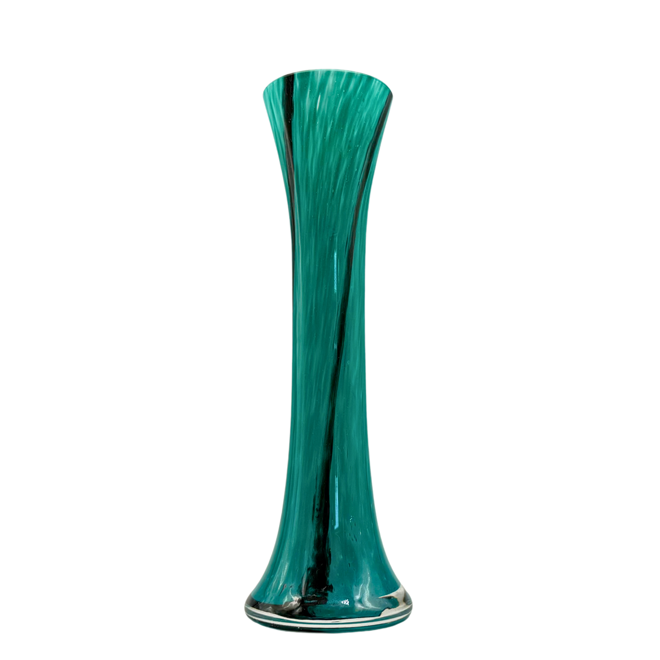 4916219. HAND-BLOWN GREEN GLASS VASE.