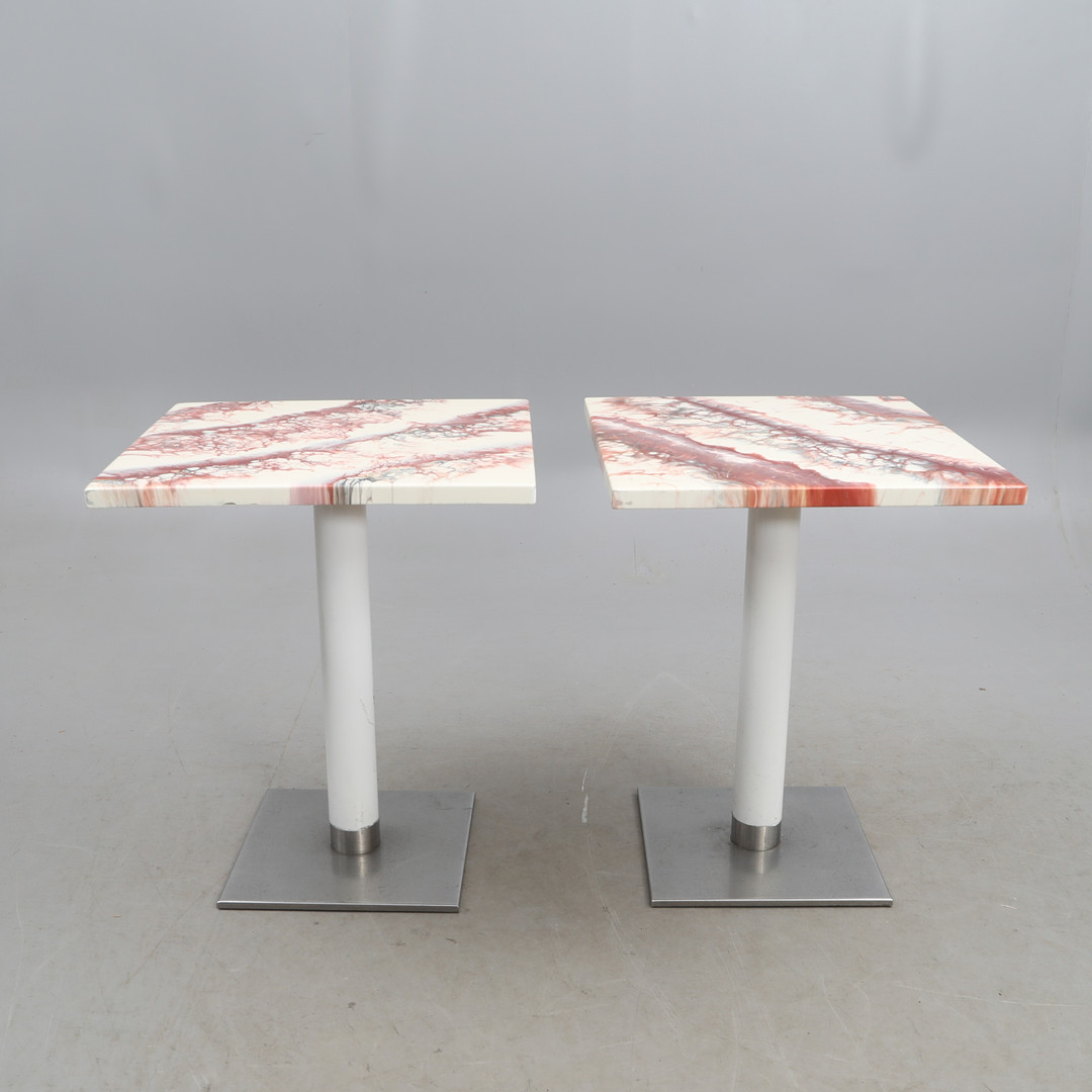 4916643. GARDEN/CAFE TABLE, a pair.