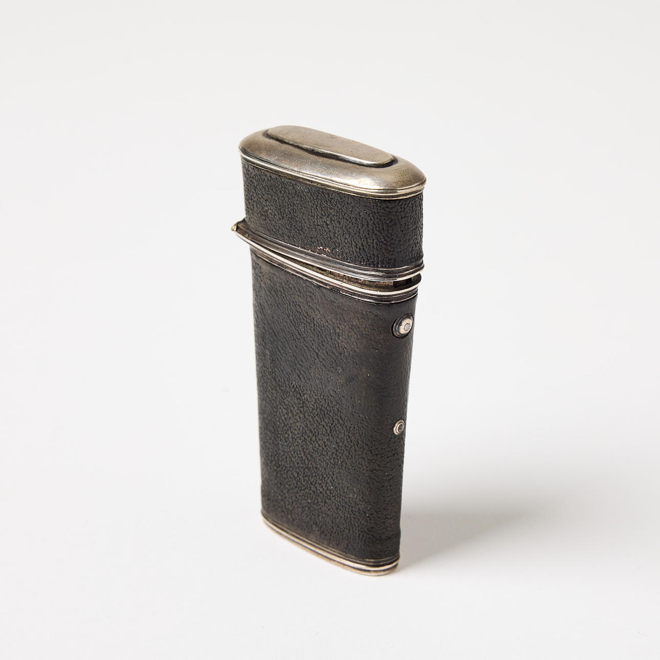 4916775. CASE, leather-covered, with utensils, circa 1800.