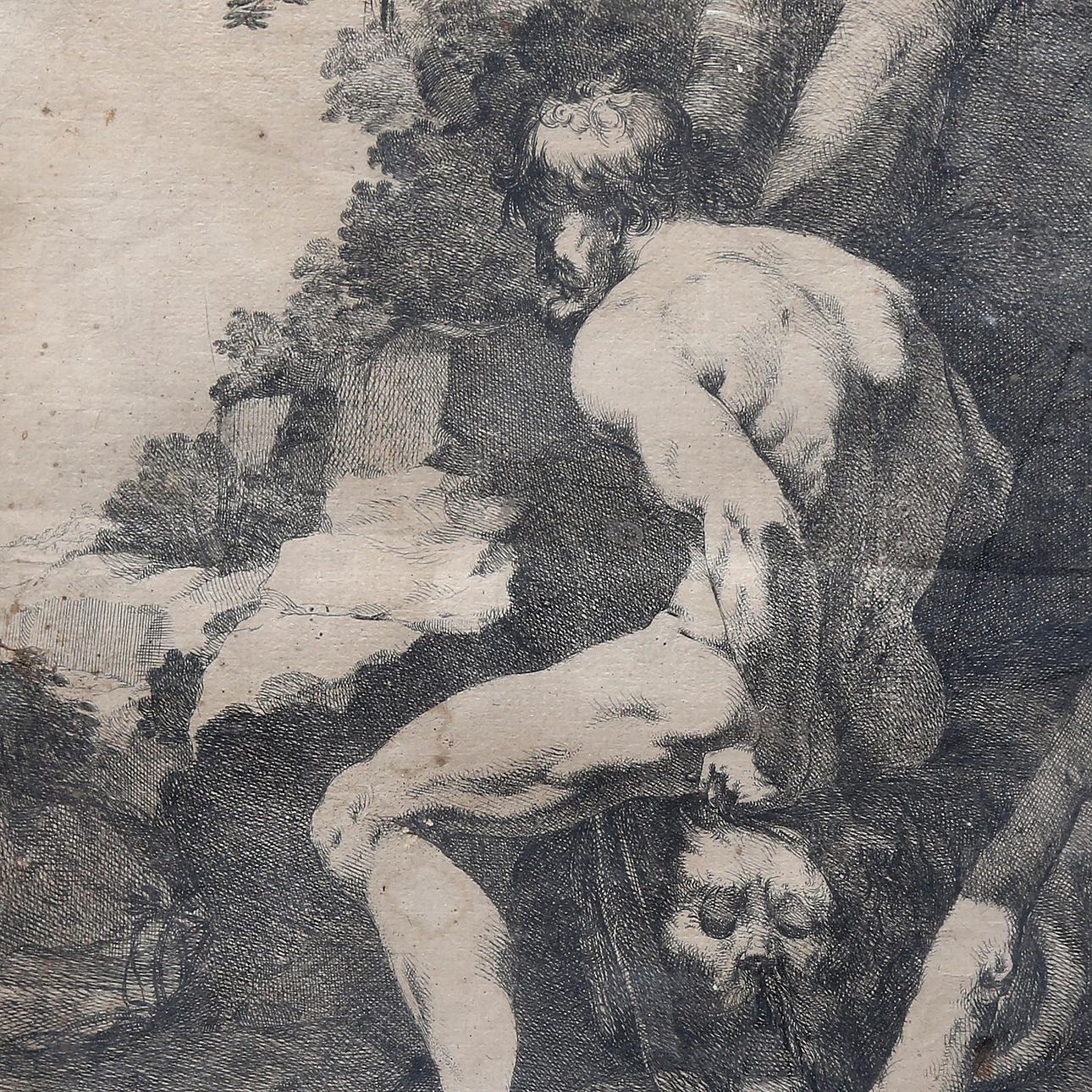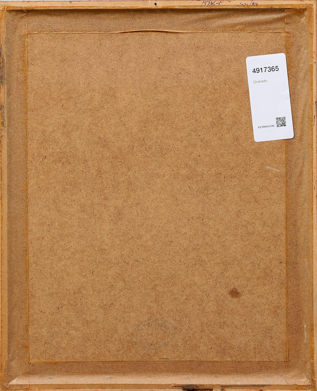 Foxing and rust. Defect on the lower perimeter. Silvery wood frame. It has not been examined outside the frame.