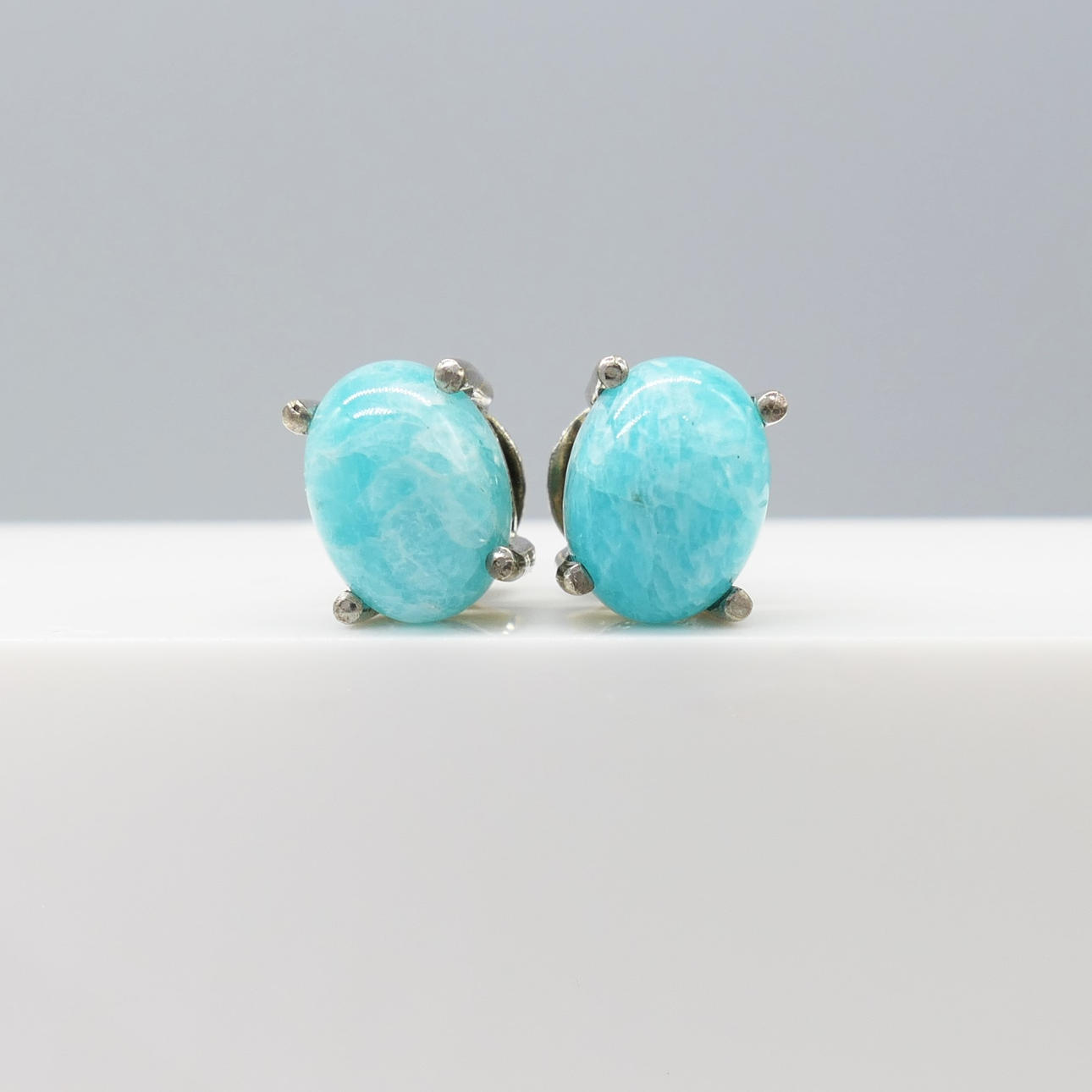 4917668. CABOCHON AMAZONITE ear studs.