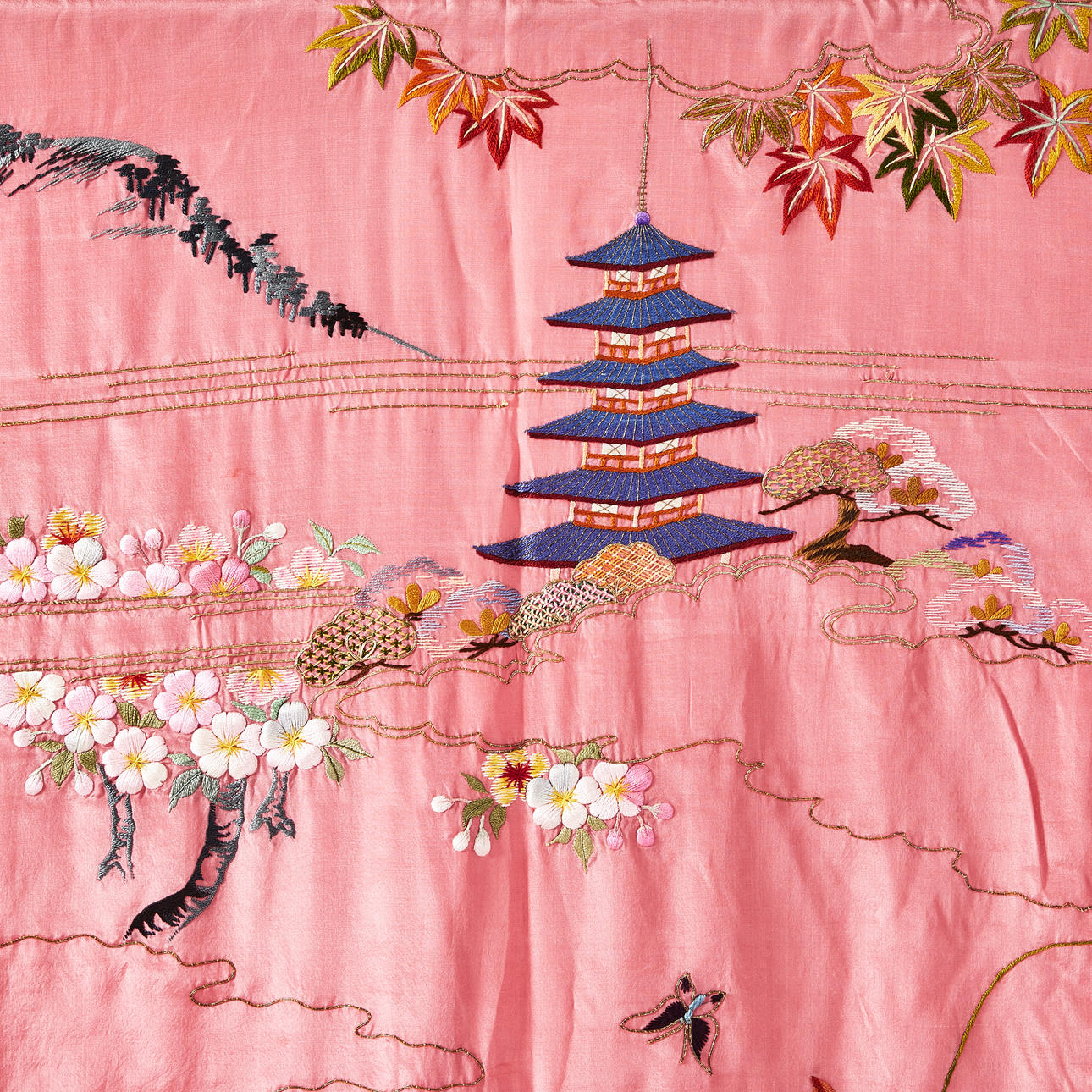 Lined, embroidered decor.