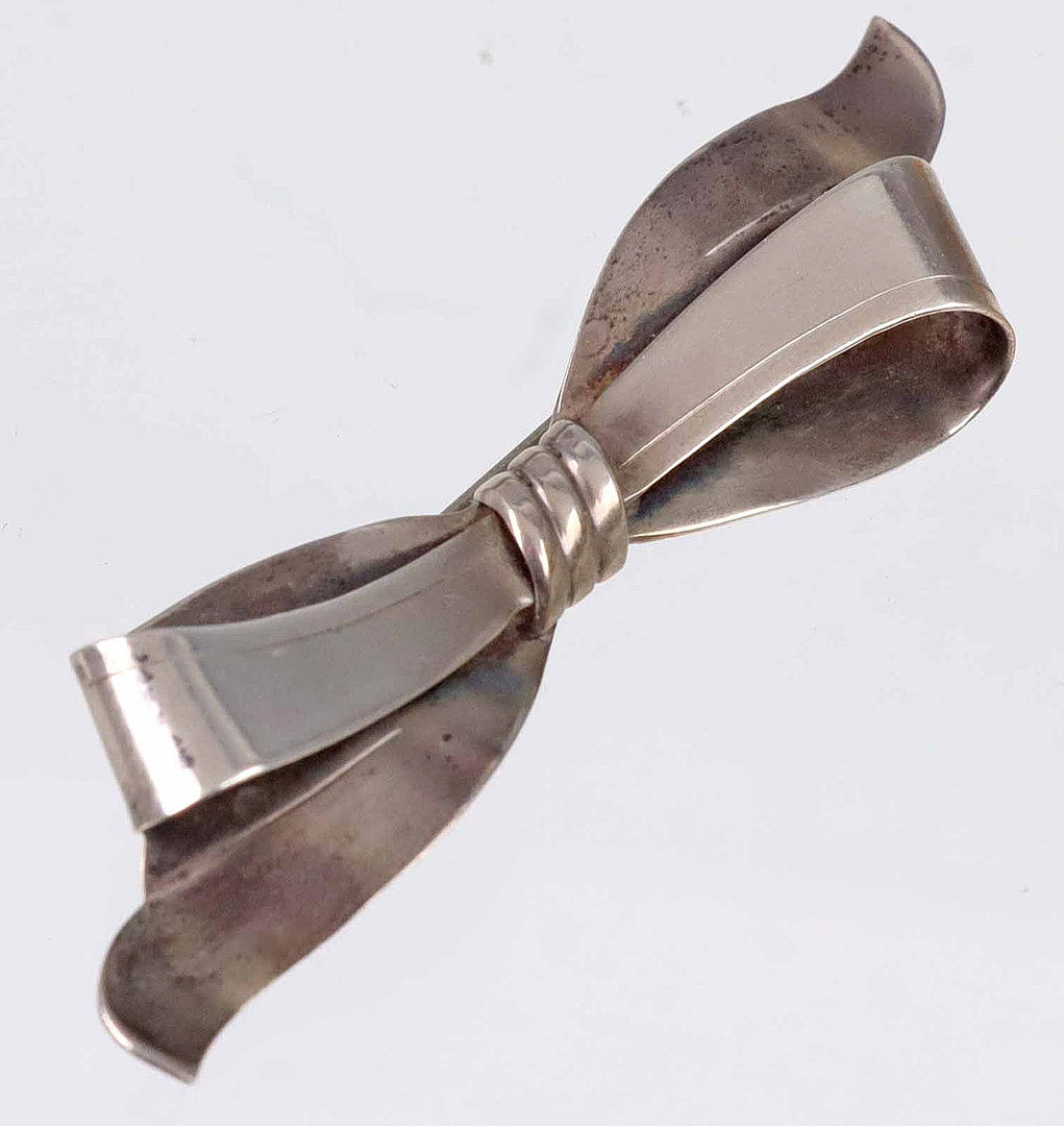 Bow brooch in 925 silver also hallmarked, handmade, back with needle, length 7.5 cm, width 2 cm, weight 8.3 grams.