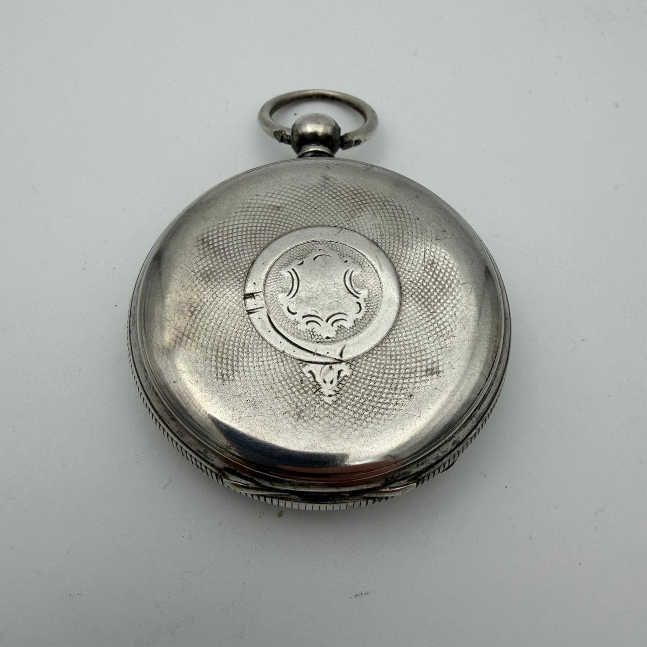 Worked at the time of cataloging. No functional warranty is provided. Use and age related wear/minor dents. Inner case with carved name. Glass with no through edge crack.
