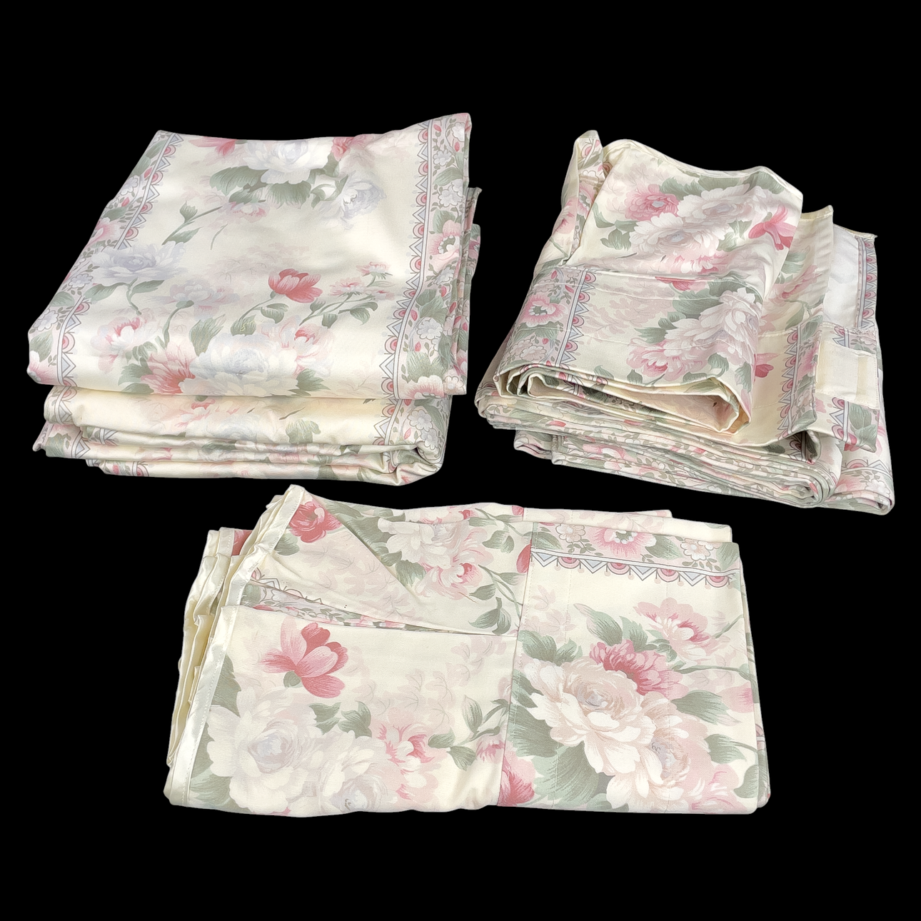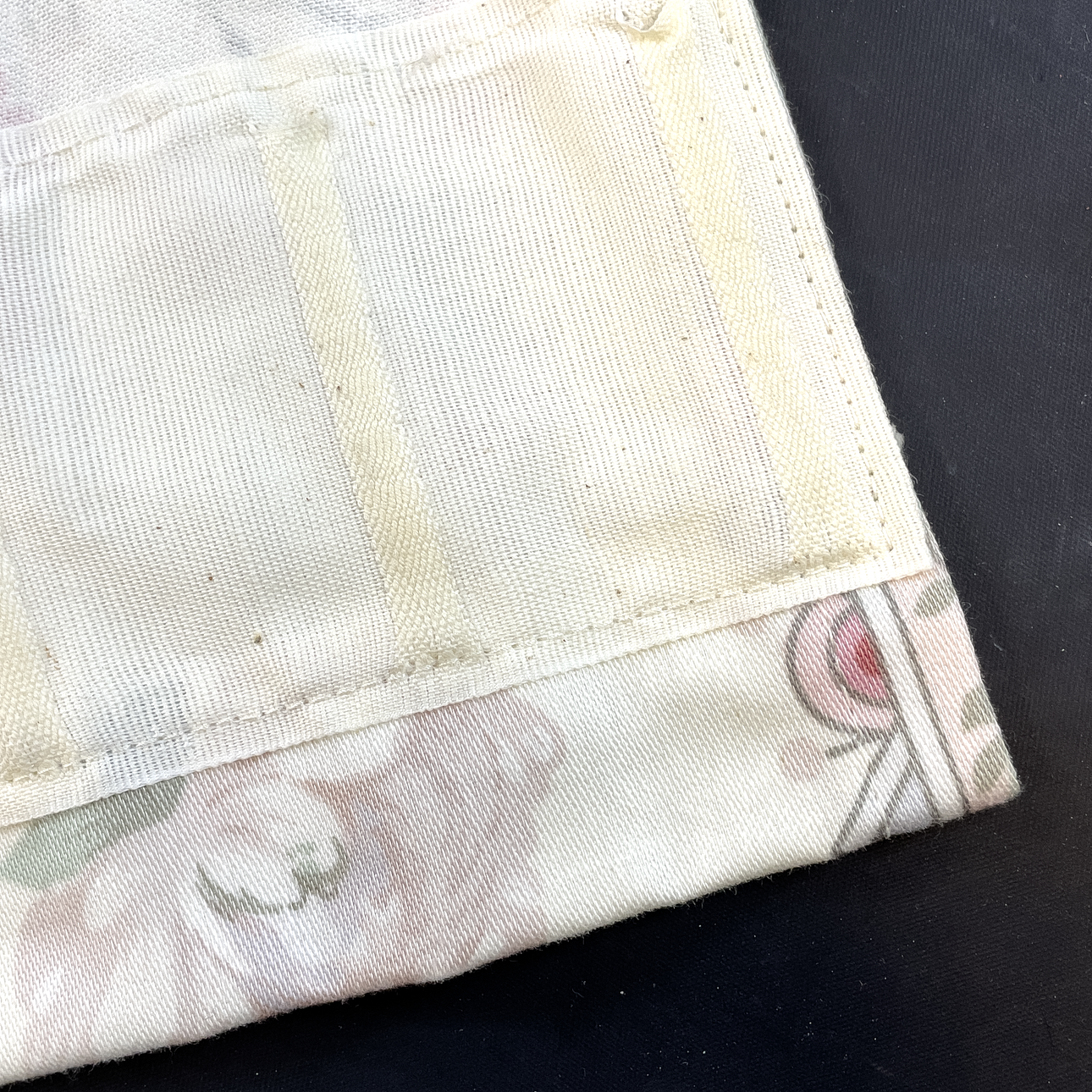 Curtains with lengths and cloaks, pull-on sheets in original packaging as well as fabric/stowage pieces. Bundle approx. 38x29x34 cm.