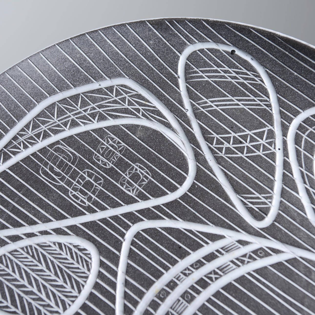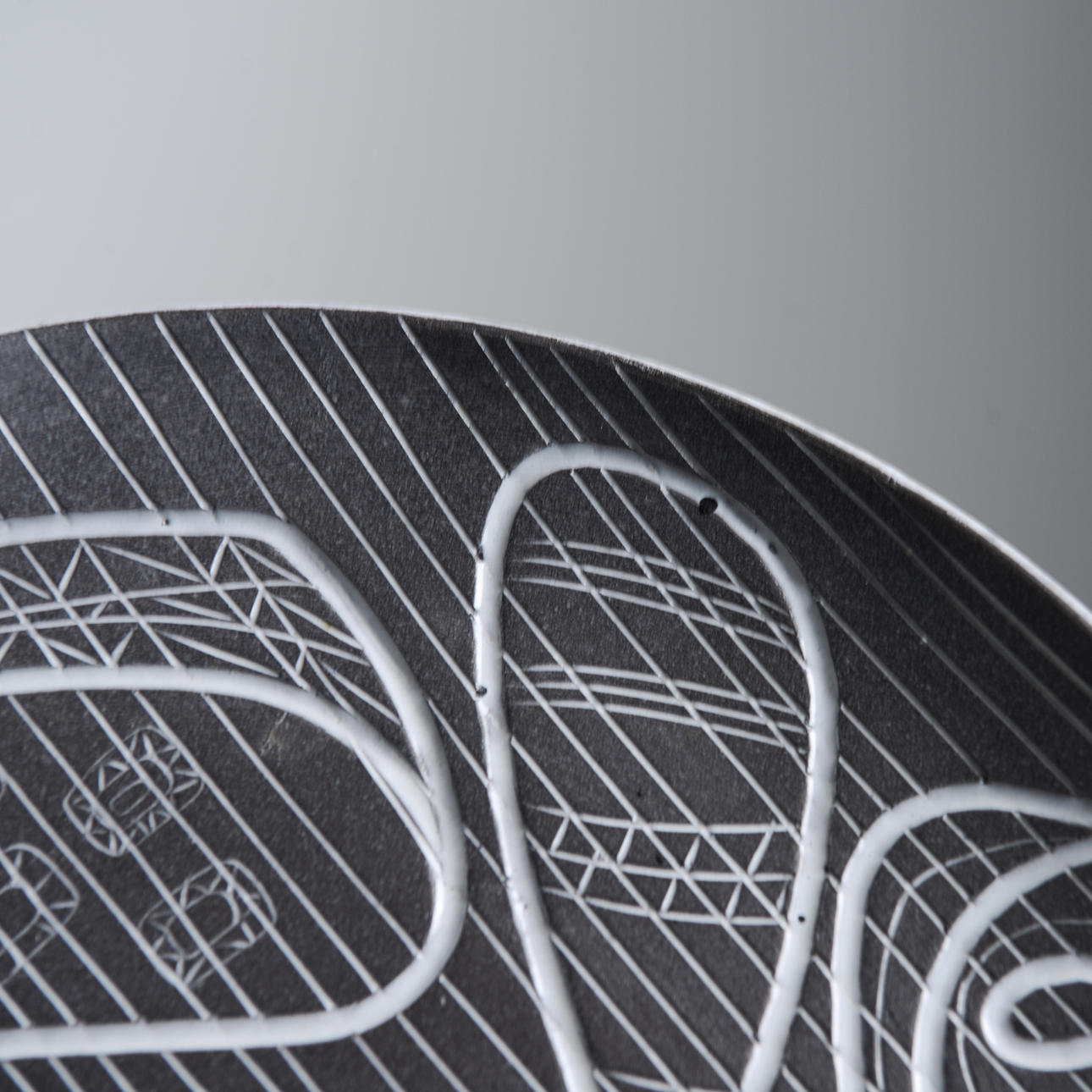 Model 2217. Glazed earthenware with carved decor. Diameter 35 cm.