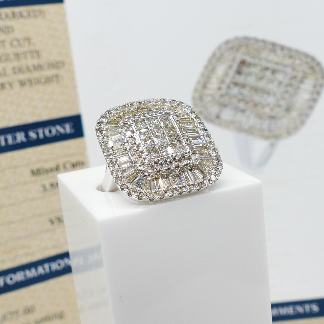 4920157. LARGE 3.55 CARAT DIAMOND panel ring.