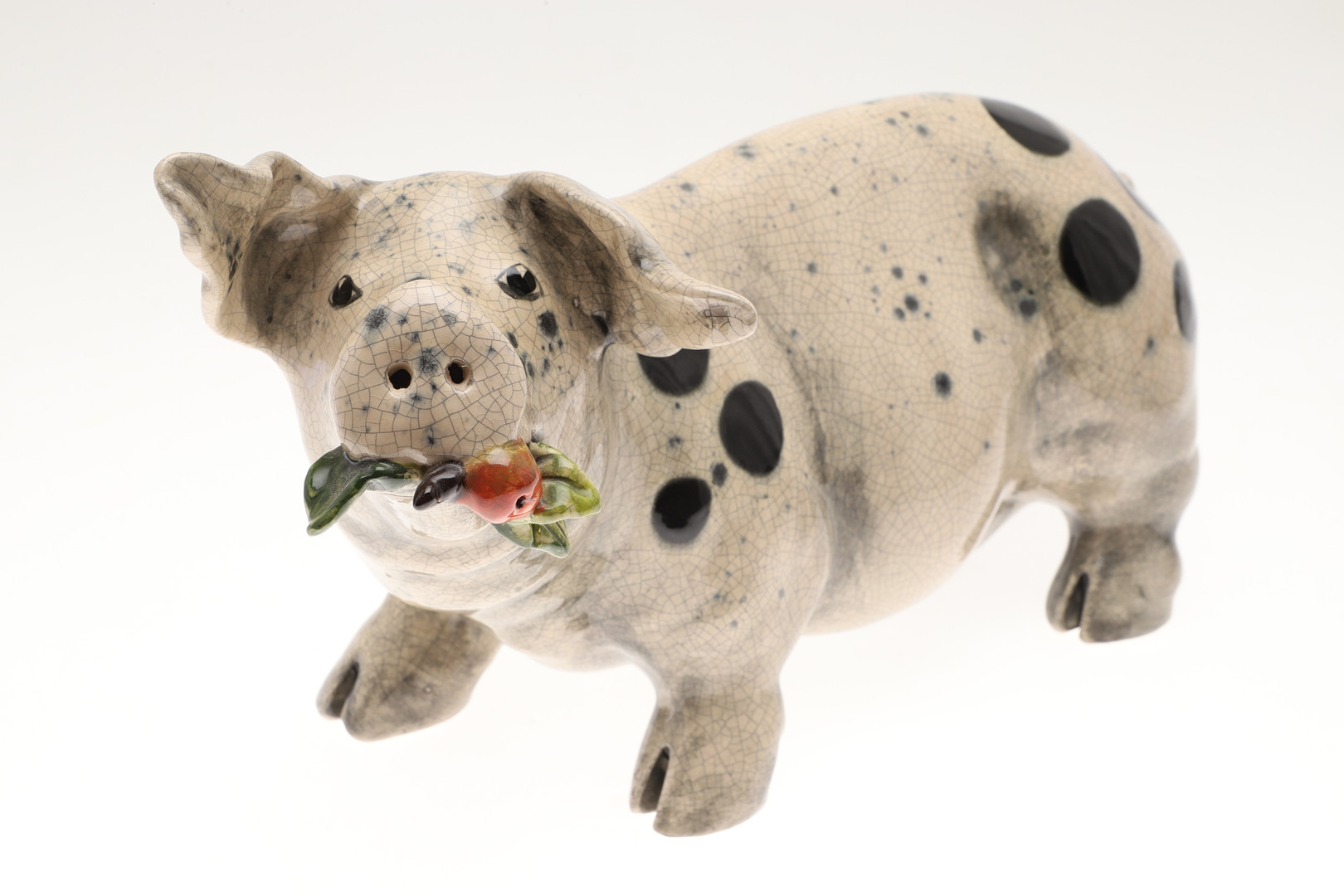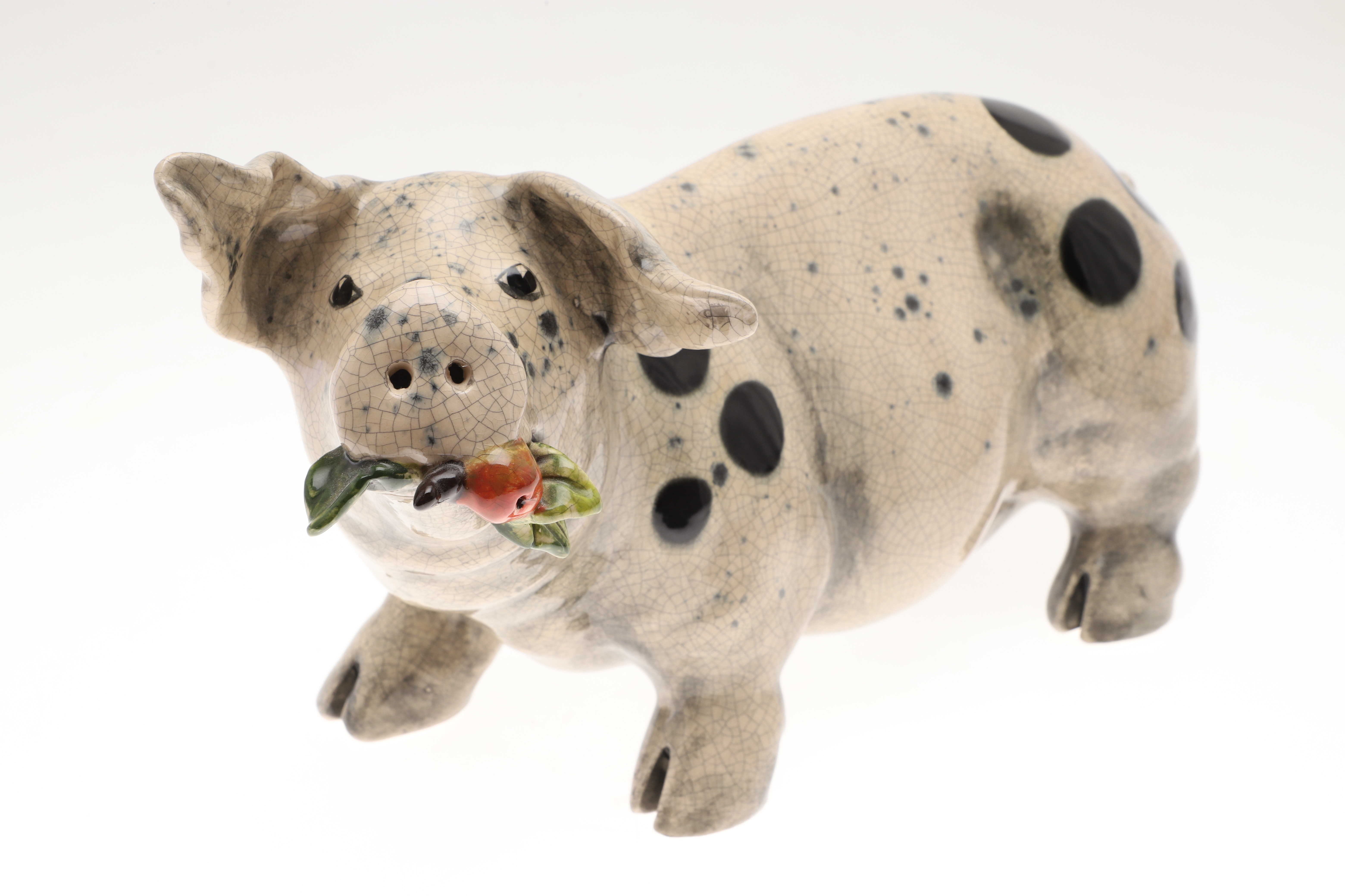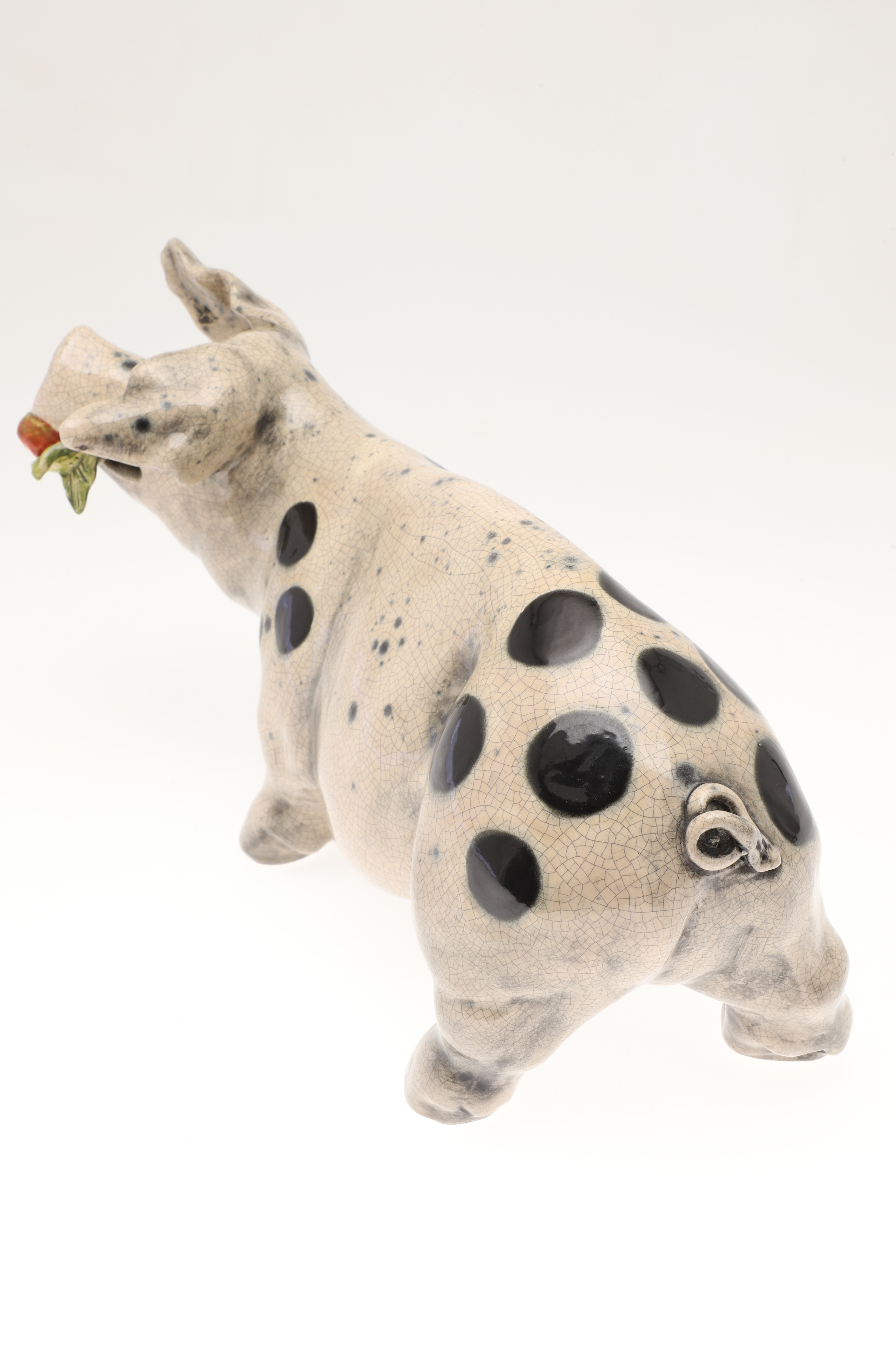4921014. SUE MASTERS (BRITISH). STUDIO POTTERY PIG - 'OLD SPOT'.
