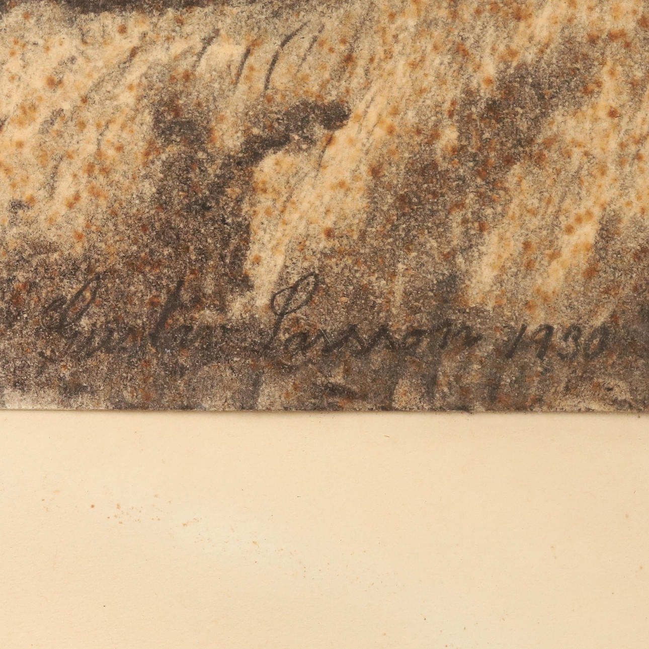 Signed. 63 x 47.5cm. Pencil/mixed media. Brown wooden frame.