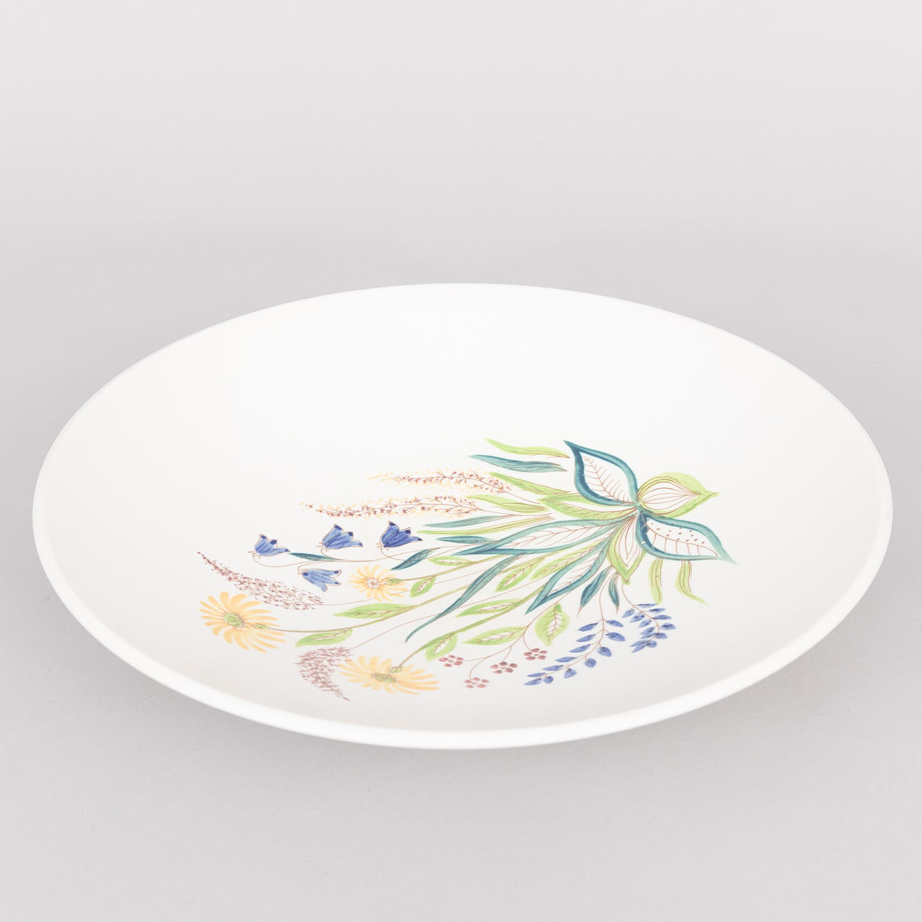 With floral decor, diameter 39,5 cm, height 8,5 cm.