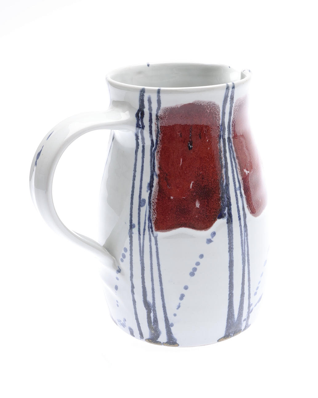 2 GRAYSHOTT POTTERY JUGS AND A CACHEPOT. (3).