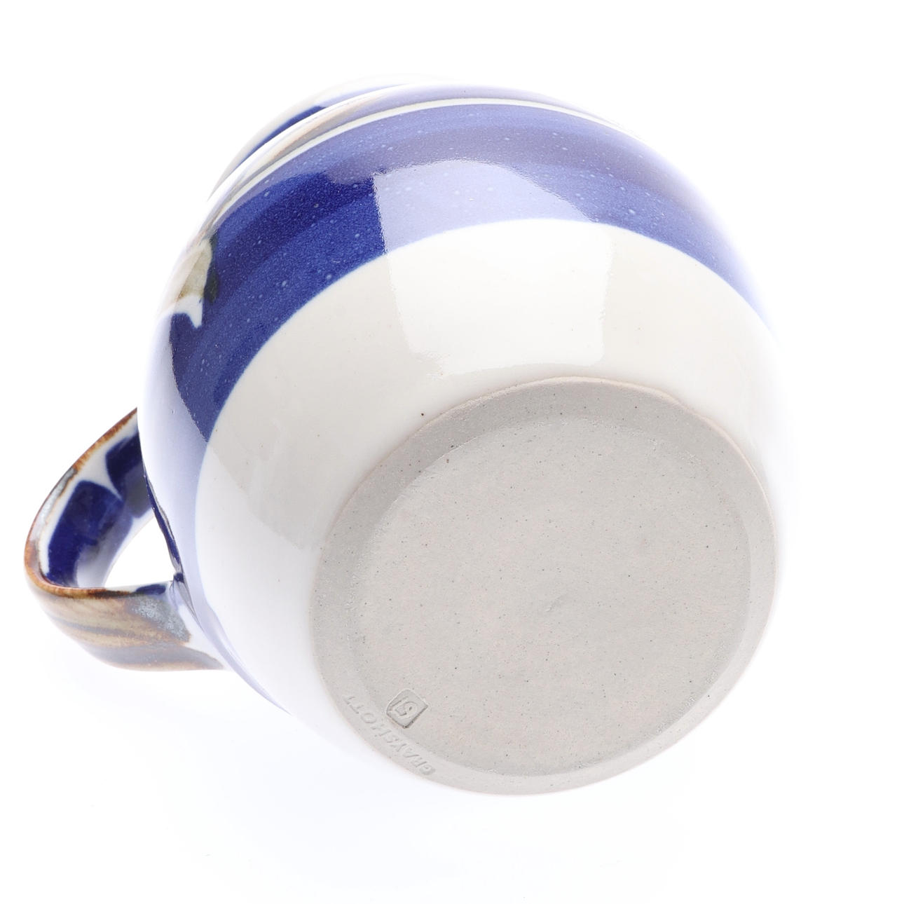 Each decorated in polychrome tin glazes, impressed marks to base, H.17cm the tallest. (3).