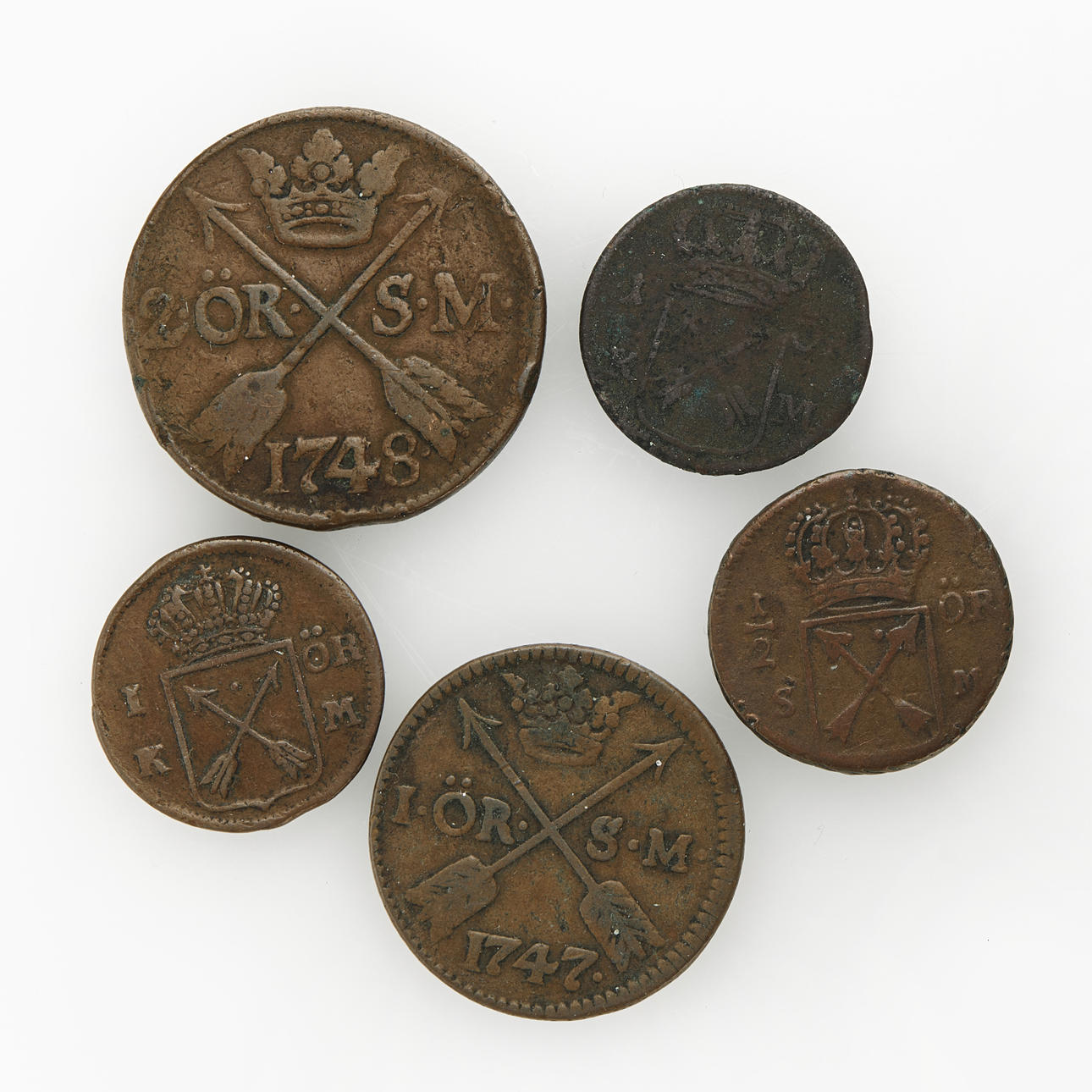 4921541. FREDERICK I (1720-1751), 5 copper coins.