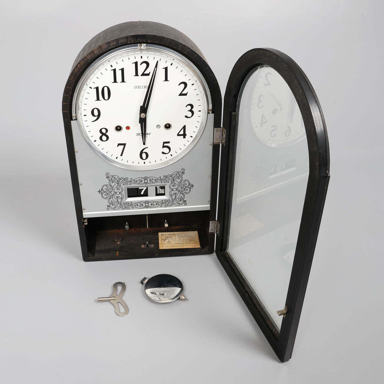 Striking mechanism functional at the time of writing, but functionality is not guaranteed. Runs but stops. Wear and marks to case.