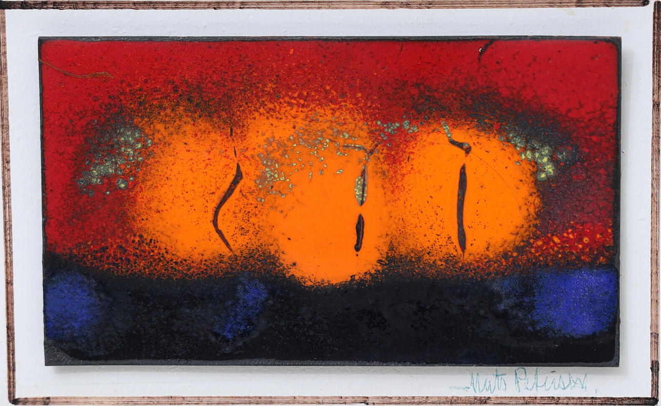 MATS PETERSÉN. Composition, enamel board, signed.