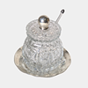 4923075. GLASS MUSTARD WITH PUNCHED SILVER PLATE.