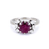 An antique 18ct white gold ring set with large Thai ruby (approx. 1.5ct) and diamonds on the sides.