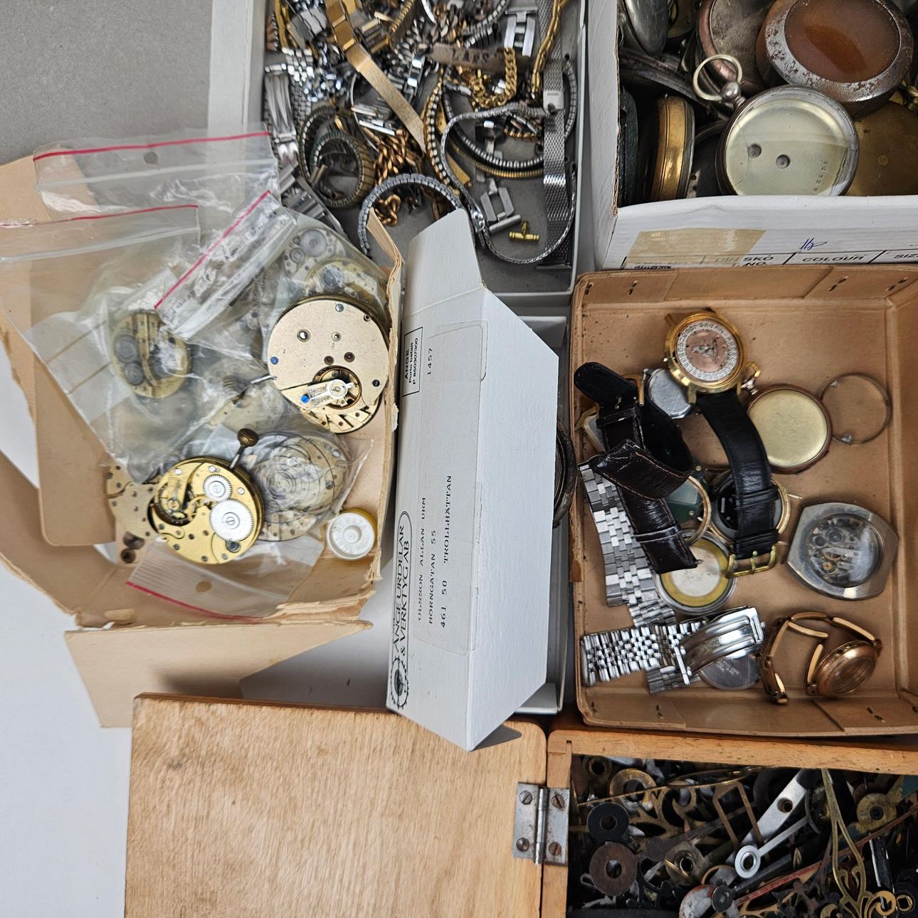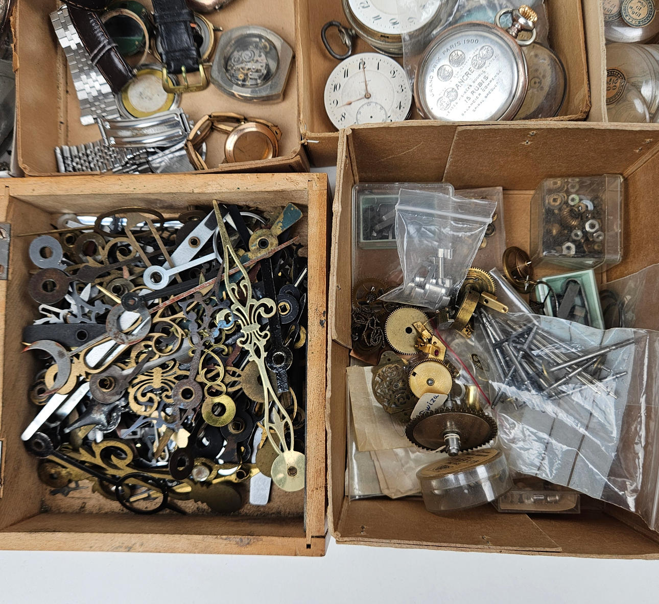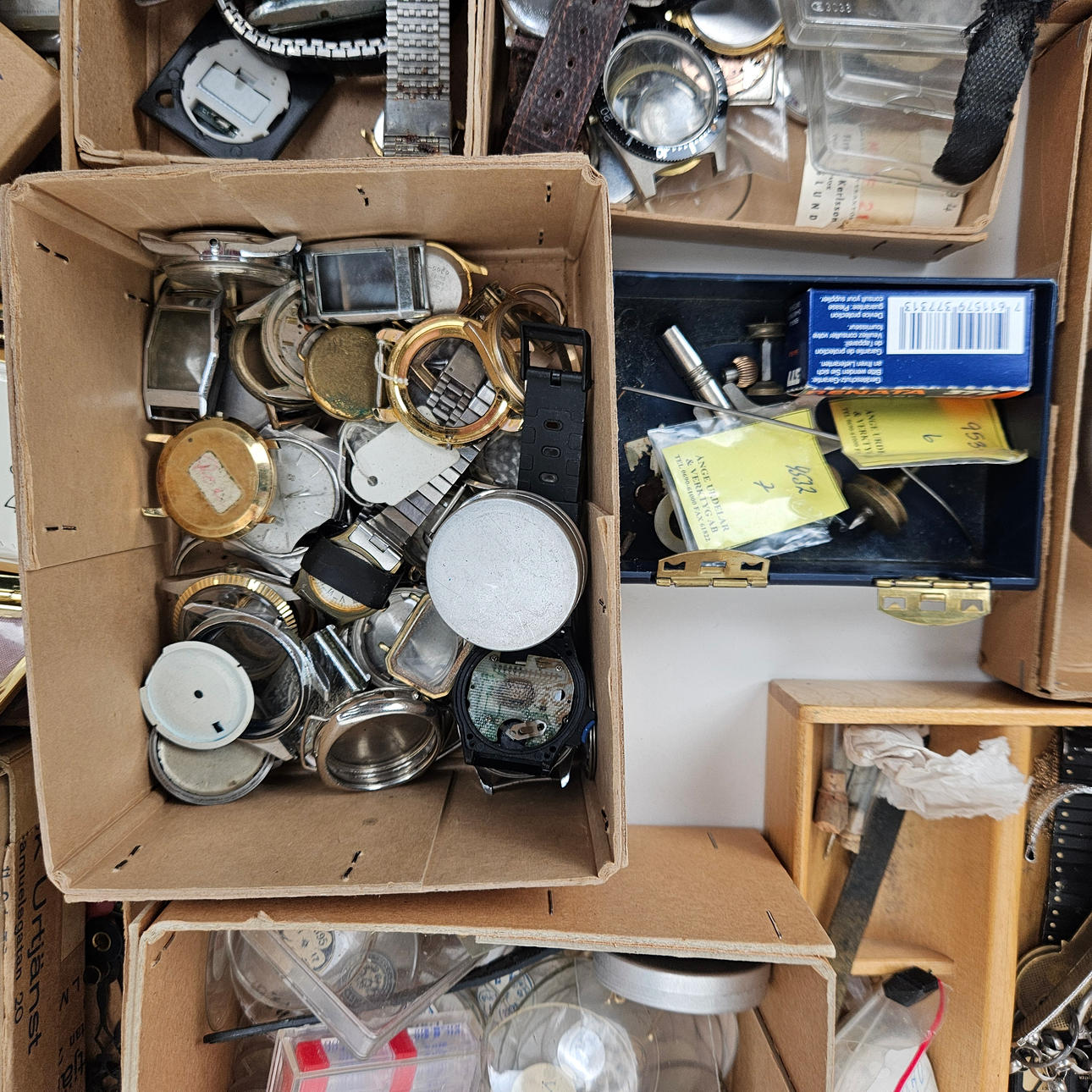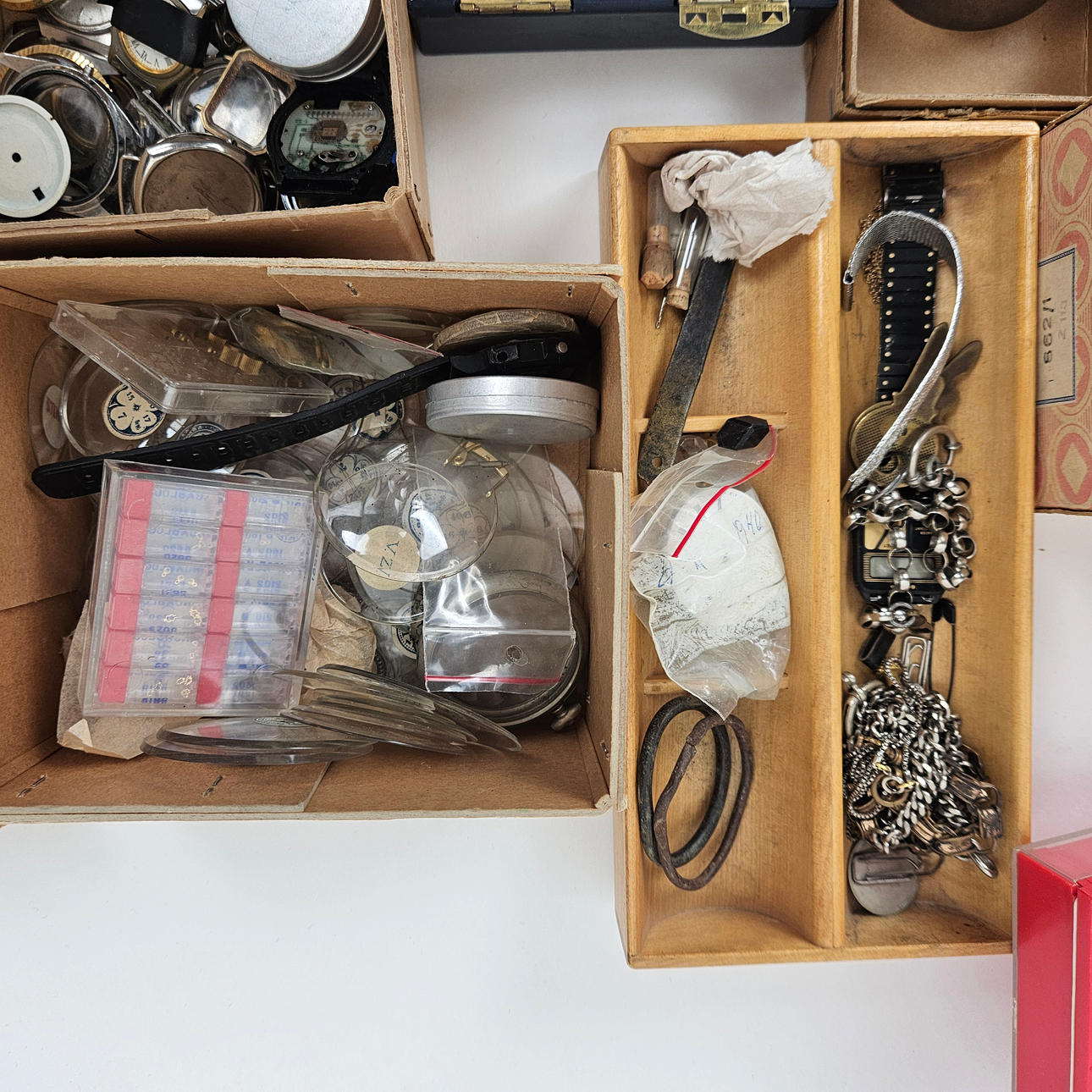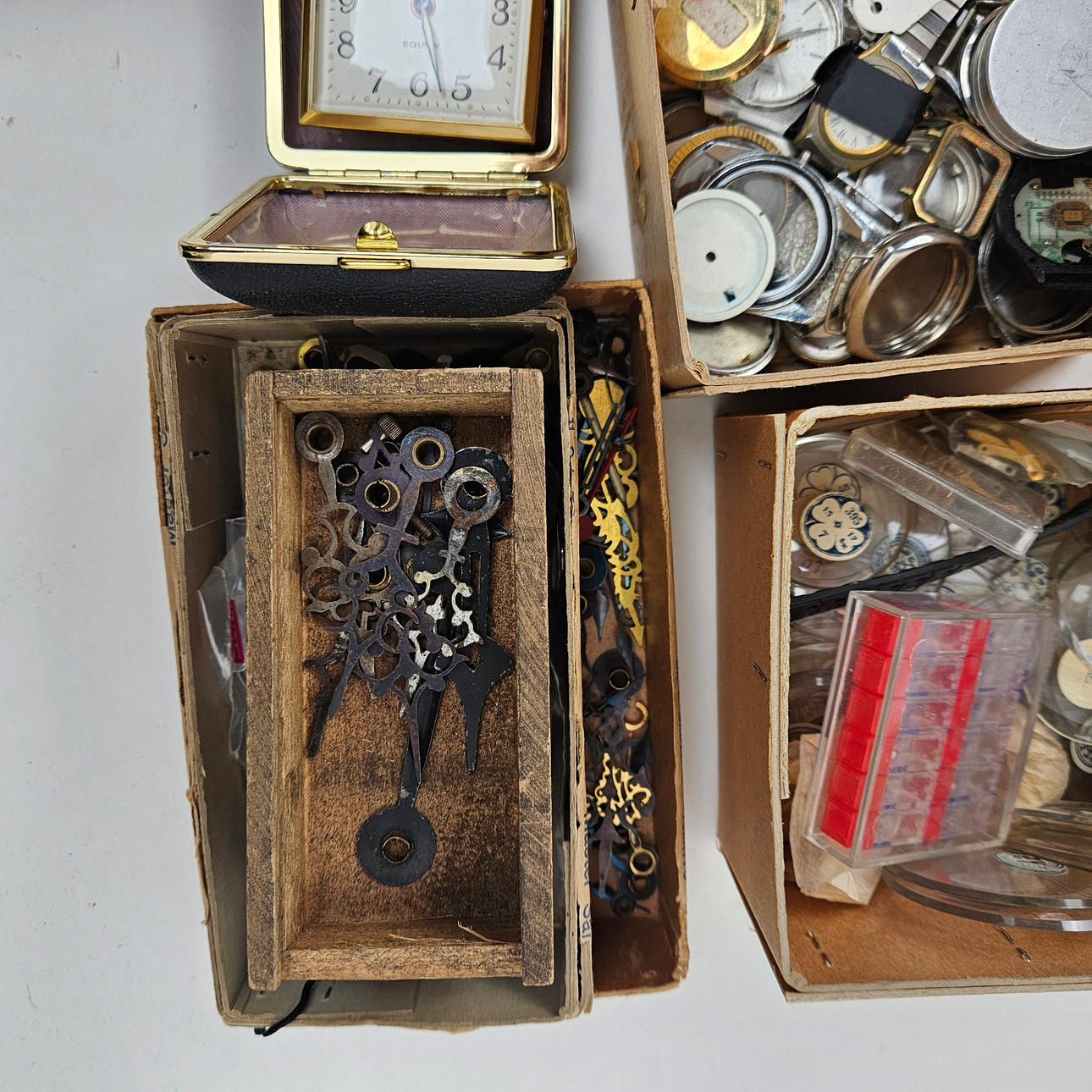 These include glasses, travel watches, cases, hands, watches, dials, sprints, bracelets.